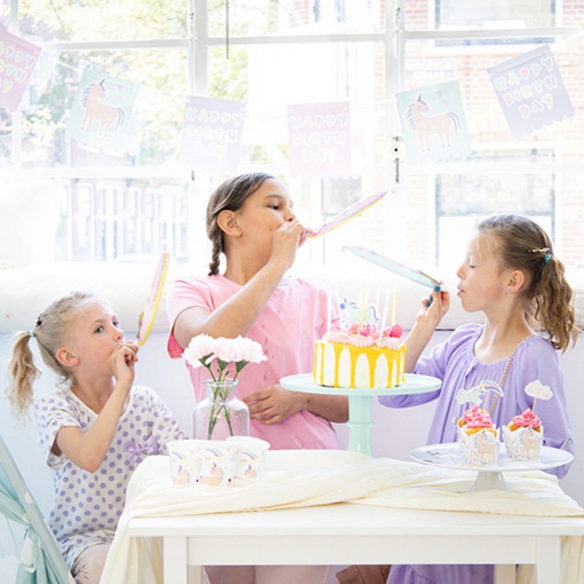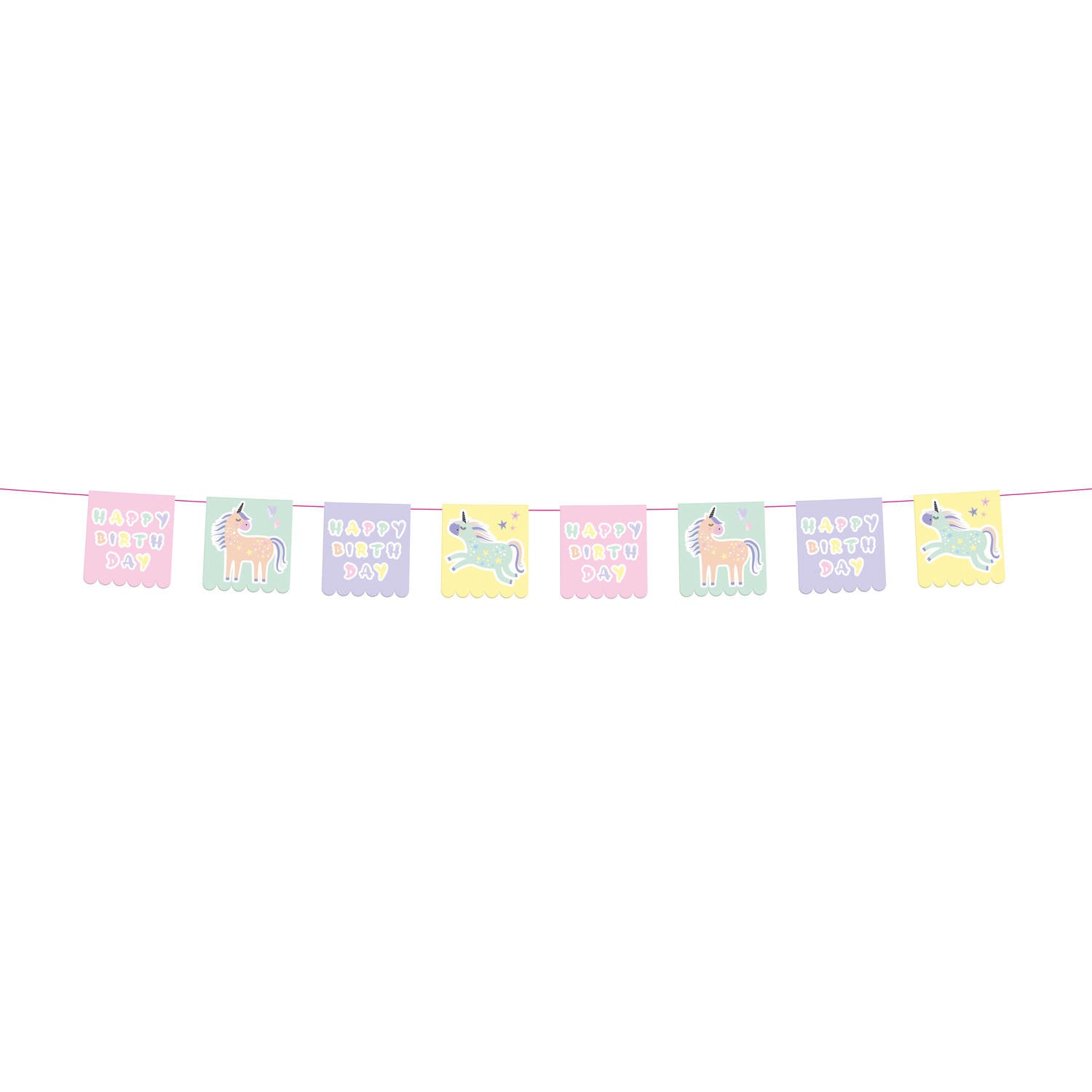 Vlaggenlijn Unicorns & Rainbows - 6 meter. Inhoud: 1 vlaggenlijn. Kleur: Meerkleurig. Bijvoorbeeld te gebruiken tijdens de volgende feestgelegenheid/feestgelegenheden: Kinderfeestje. Deze slinger is 6 meter lang met 12 vlaggetjes van 18x21 cm. Het artikel is gemaakt van papier en is dubbelzijdig bedrukt.