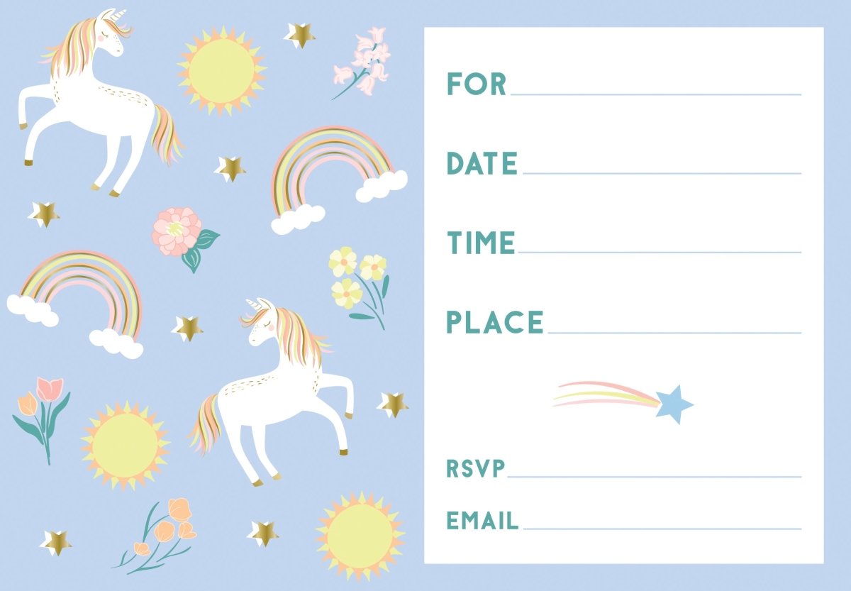 Unicorn Uitnodigingen Blauw/Goud 8st