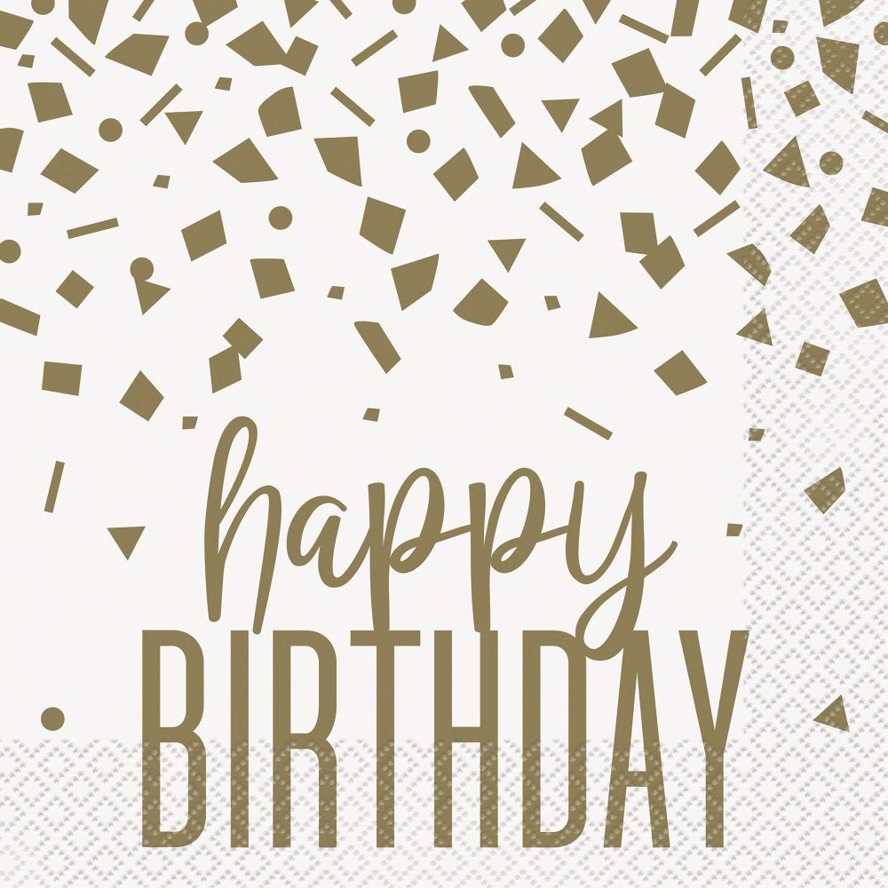 Verjaardag Servetten Happy Birthday Goud Confetti 16st