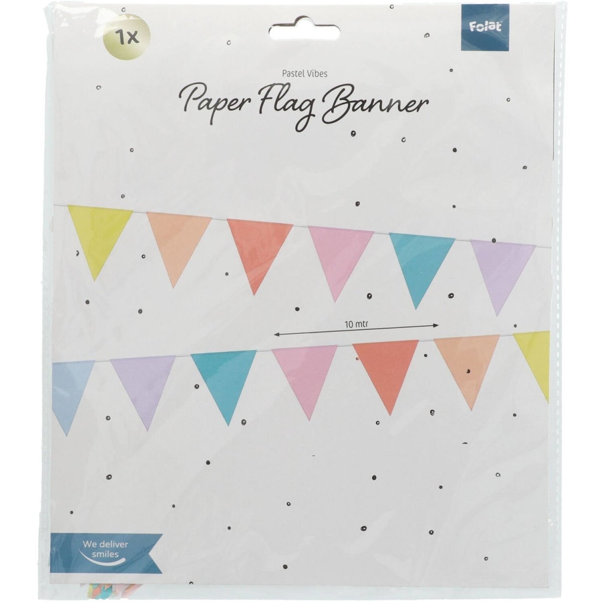 Vlaggenlijn Pastel Meerkleurig - 10 meter. Inhoud: 1 vlaggenlijn. Kleur: Meerkleurig. Bijvoorbeeld te gebruiken tijdens de volgende feestgelegenheid/feestgelegenheden: Verjaardag, Kinderfeestje en Jubileum. Deze slinger is 10 meter lang. Het artikel is gemaakt van papier.