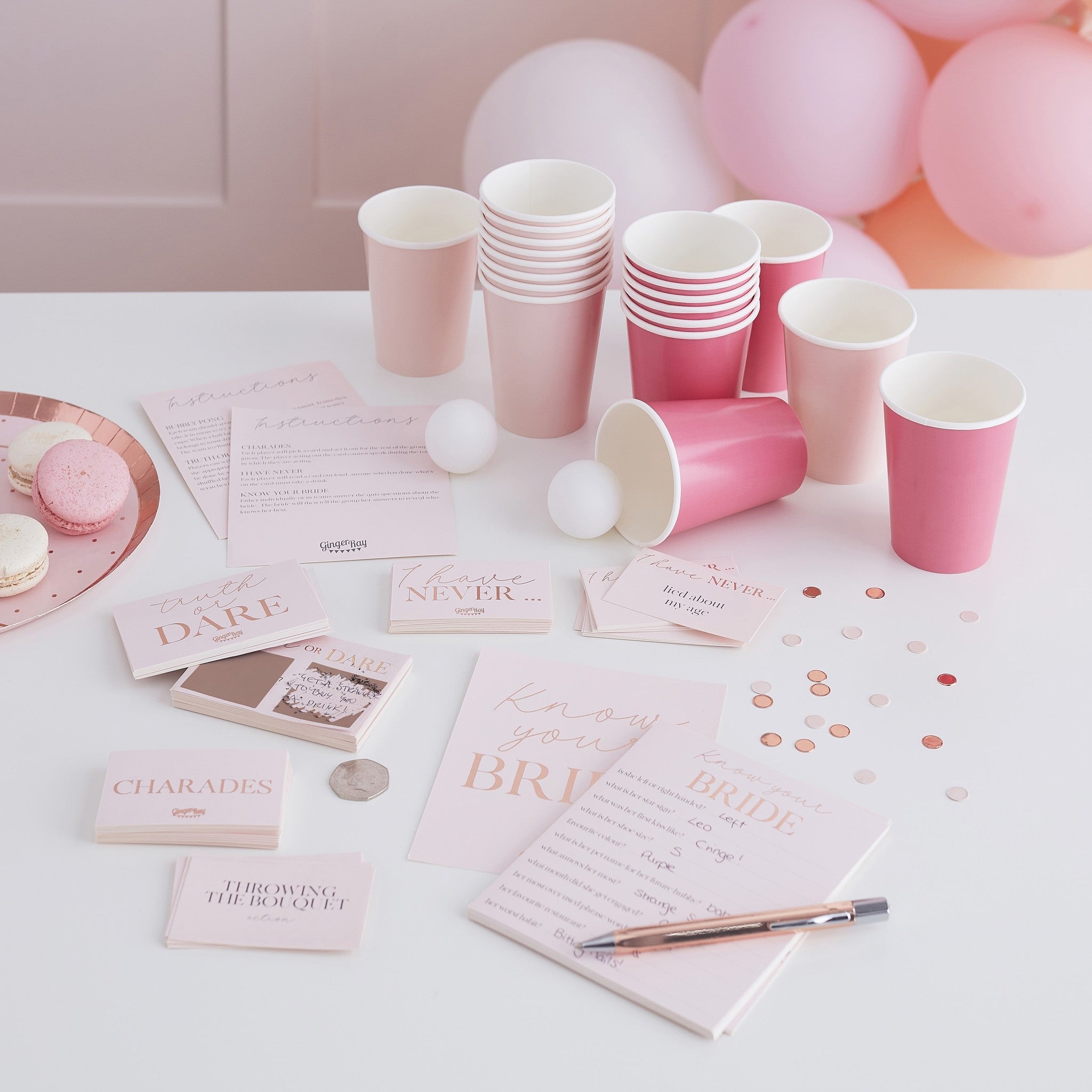 Elk pakket bevat 5 leuke spelletjes pong spel nooit heb ik ooit hen charades waarheid of durf en hoe goed ken je de bruid en is zeker om uren van eindeloos plezier voor de aanstaande bruid en hennen te brengen!