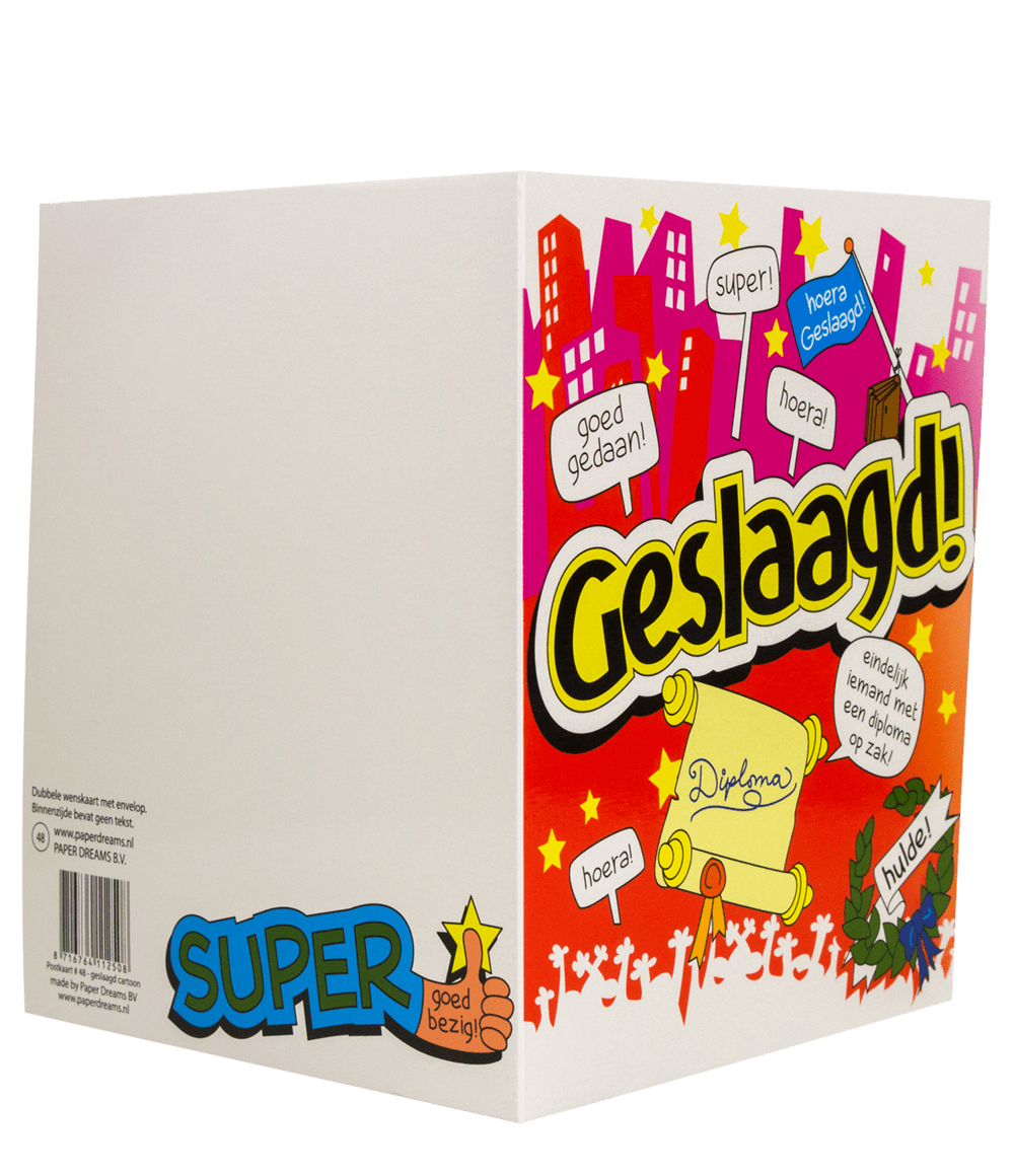 Verpakkingsinhoud: Wenskaart Geslaagd 16,5cm