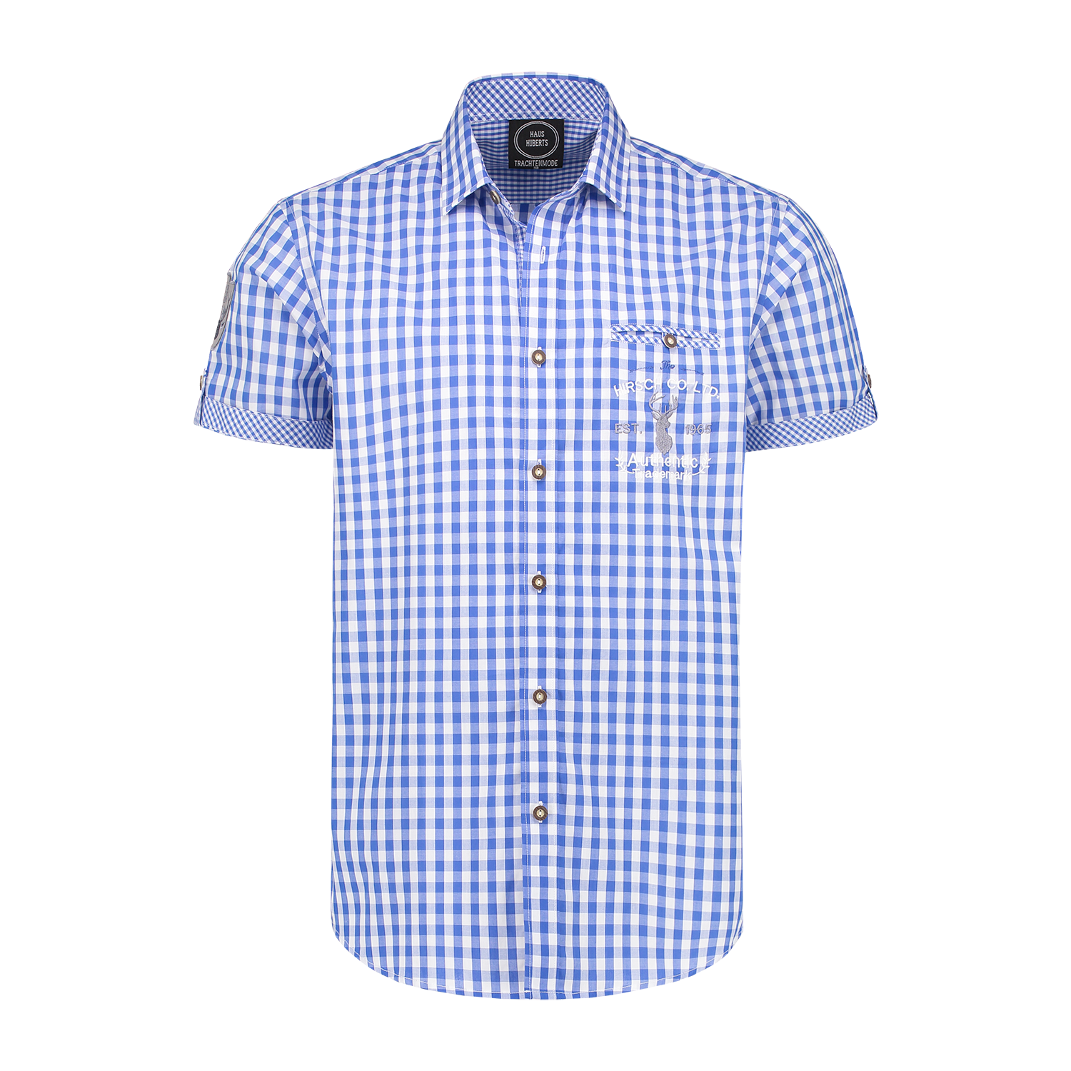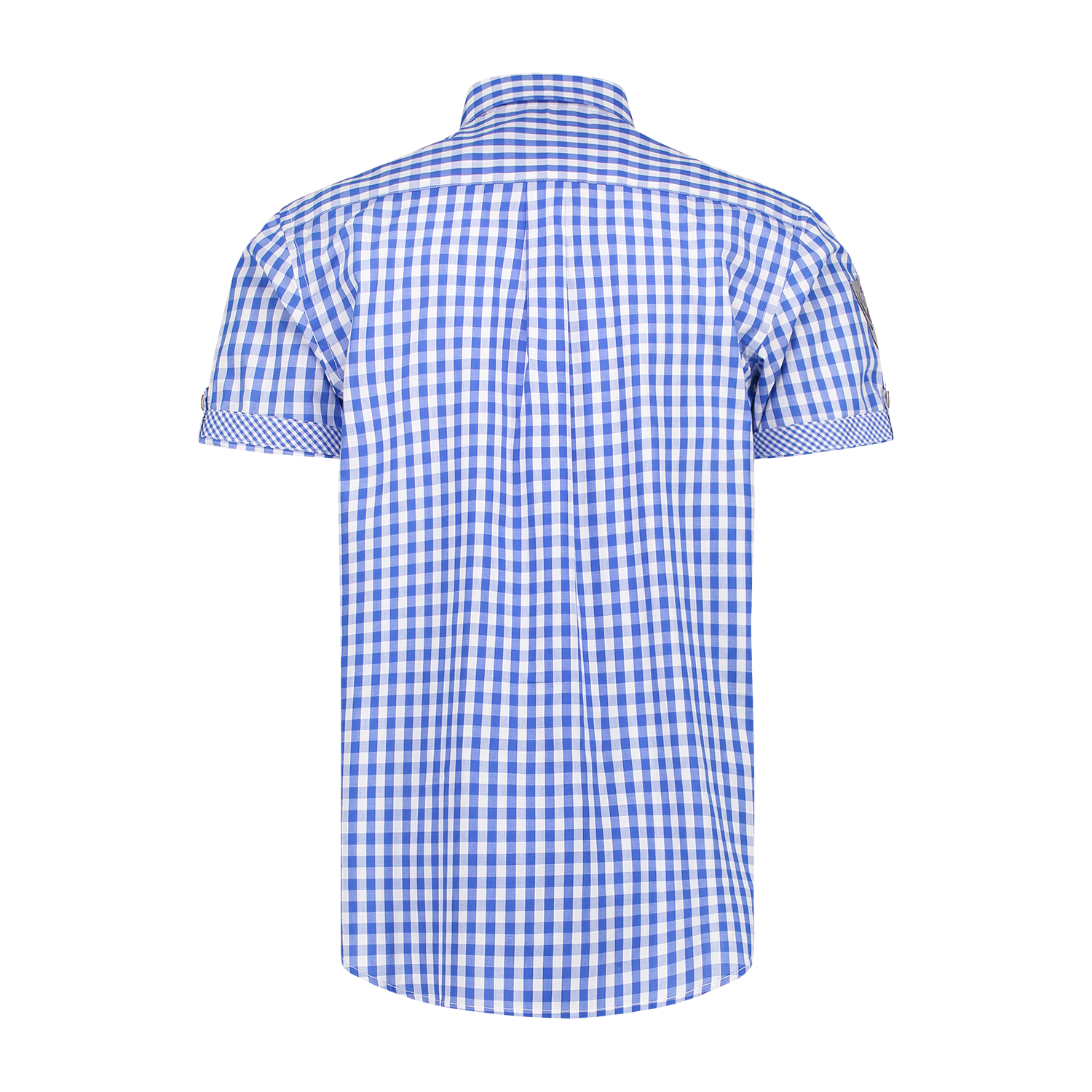 Wit Blauwe Blouse Heren Korte Mouw Traditioneel Geruit