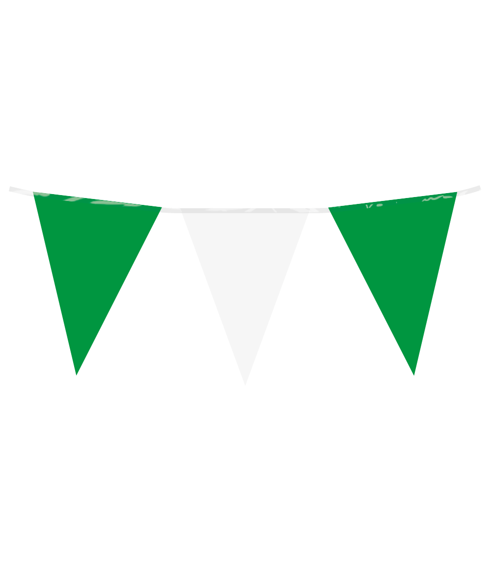 Met de party flags PE - green white uit de Basic collectie van Paper Dreams haal je een kwalitatieve groen witte vlaggenlijn in huis voor een scherpe prijs. De vlaggenlijn is 10 meter lang.