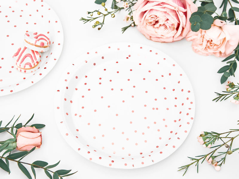 Witte Borden Rose Gouden Stippen 18cm 6st