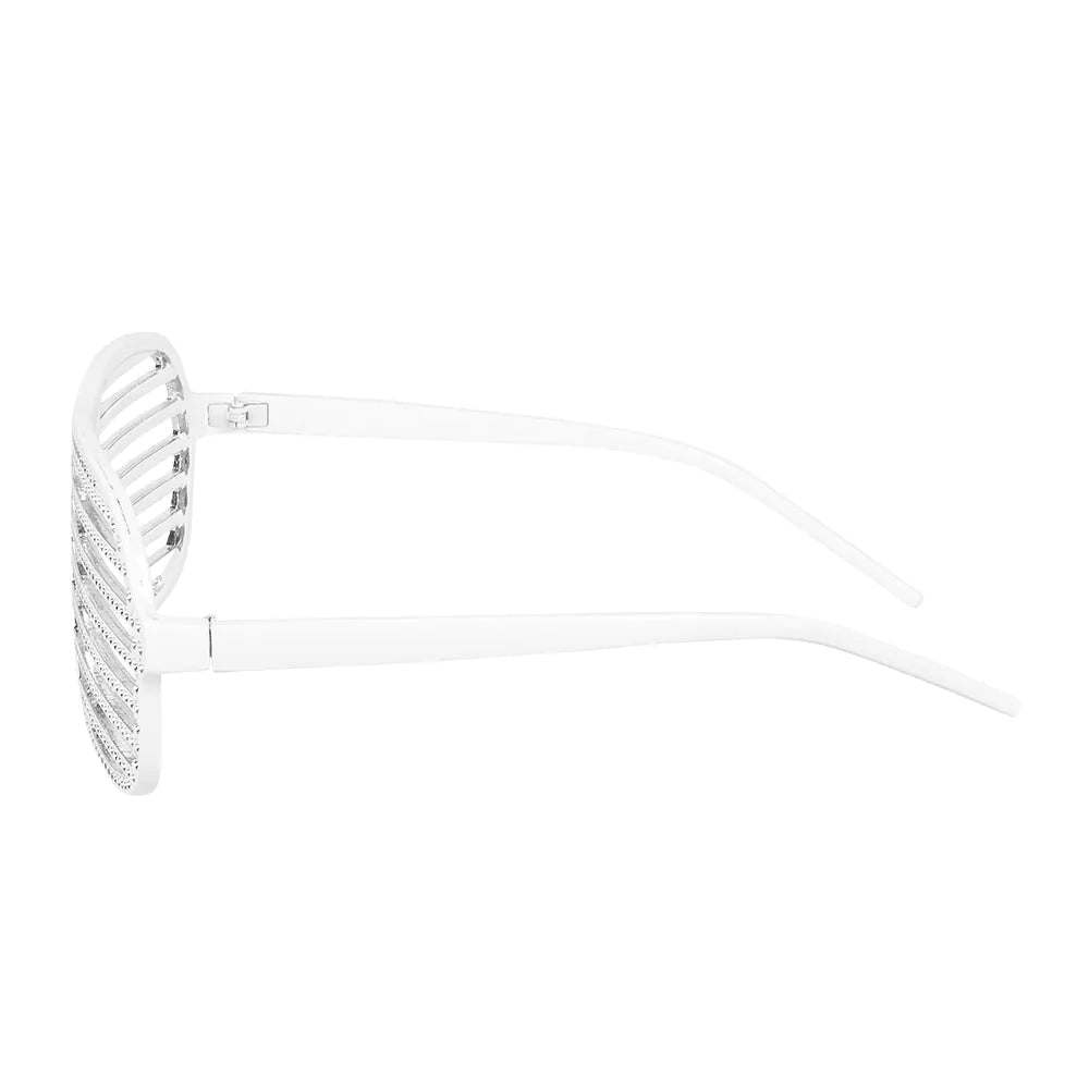 Deze coole shutter partybril is perfect om wat glamour toe te voegen aan een leuke retro 90's outfit voor Carnaval, een fout feest of themafeest. De witte lamellenbril is versierd met glitter steentjes. Erg leuk voor festivalgangers, feestbeesten en 90's fanaten.