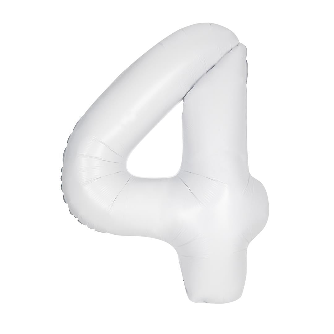 Witte Cijfer Ballon 4 Jaar Matte 86cm