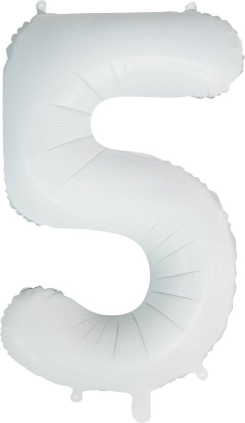Witte Cijfer Ballon 5 Jaar Glans 86cm
