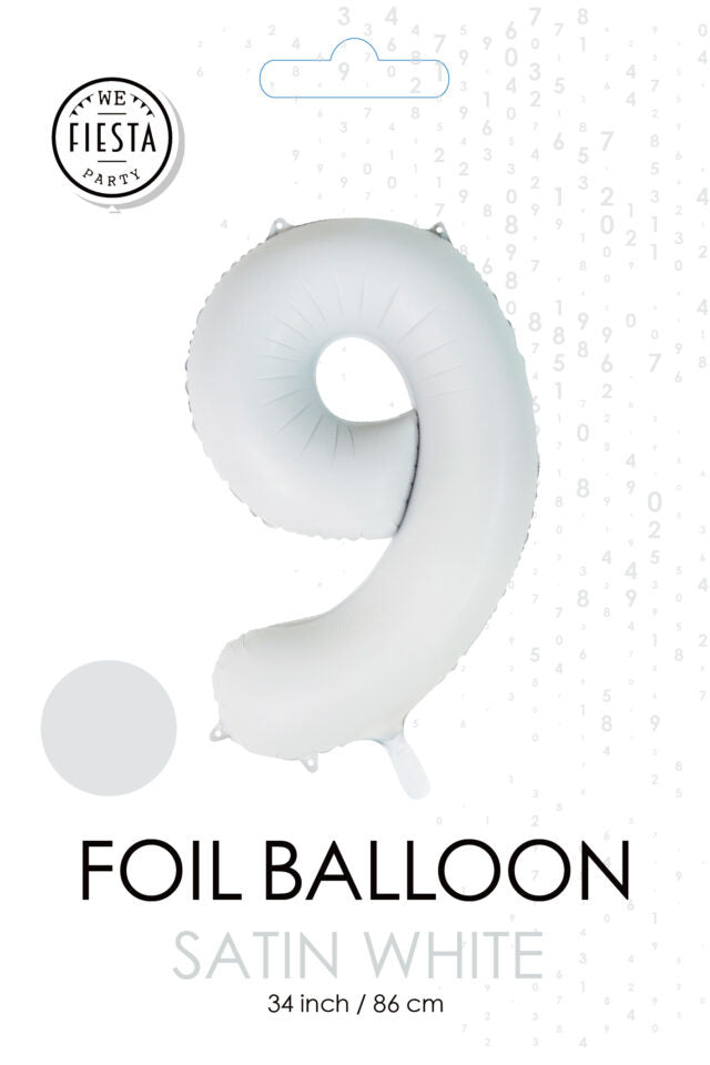 Witte Cijfer Ballon 9 Jaar Glans 86cm