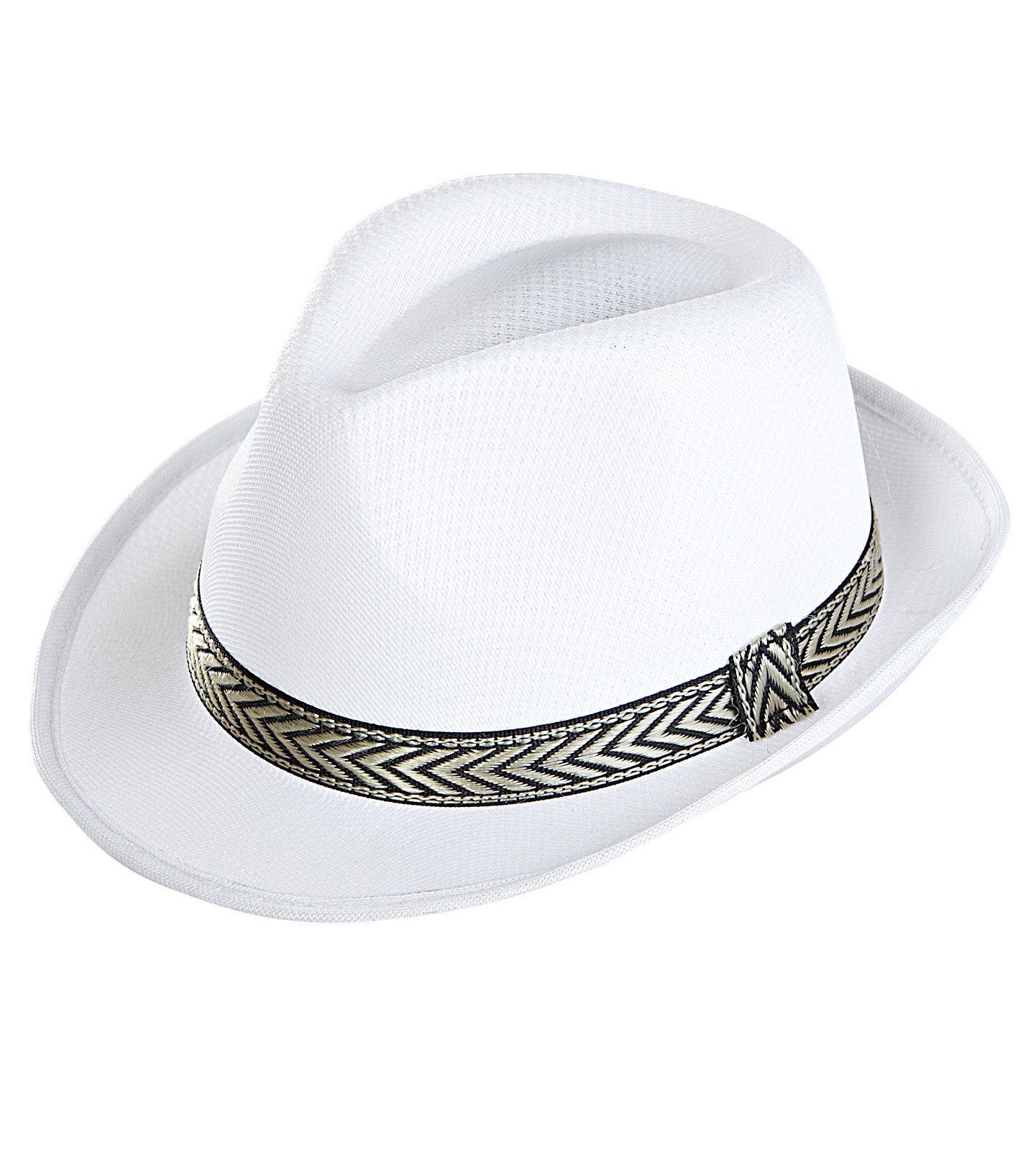 Beschrijving Reviews Over dit product Omschrijving: witte panama fedoraMateriaal: 100% polyesterWasinstructies: niet wassen, bleken niet toegestaan, niet in de droger drogen, niet strijken, niet chemisch reinigen Trustpilot