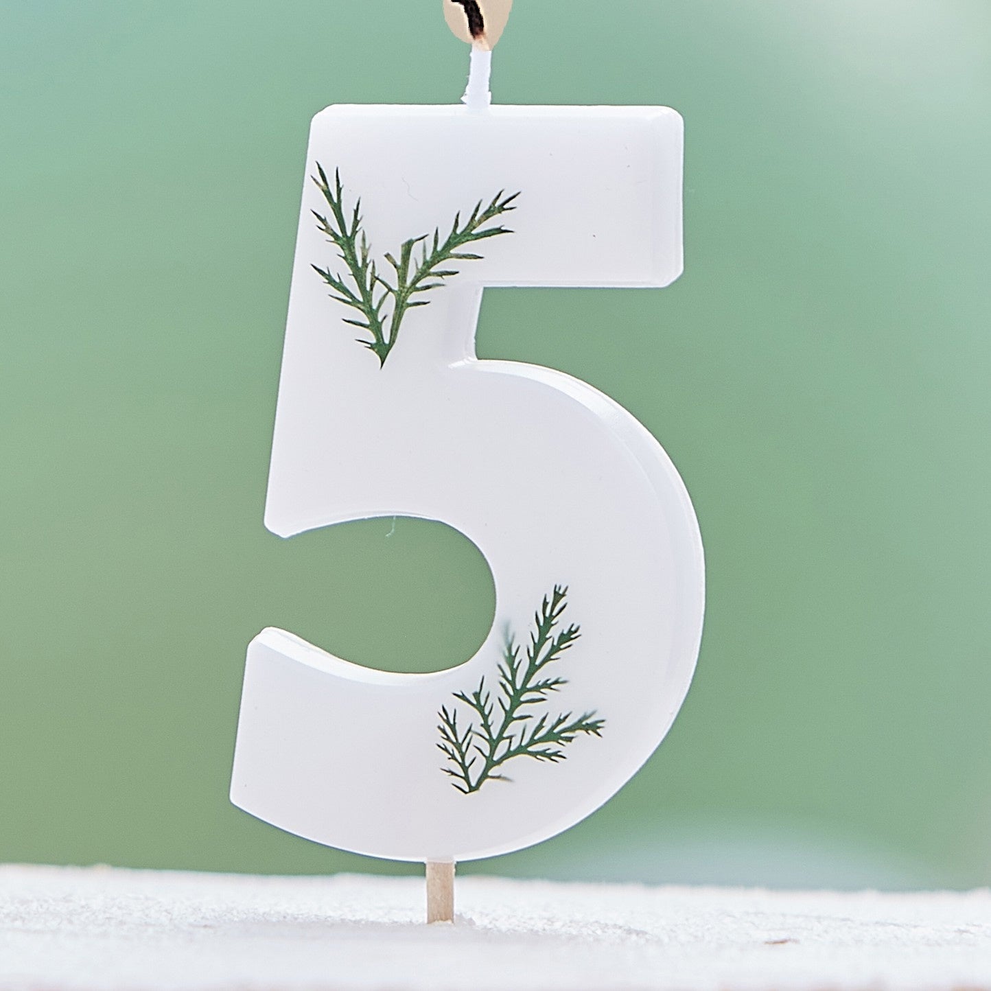 Witte Kaars 5 Jaar Gebladerd 5cm