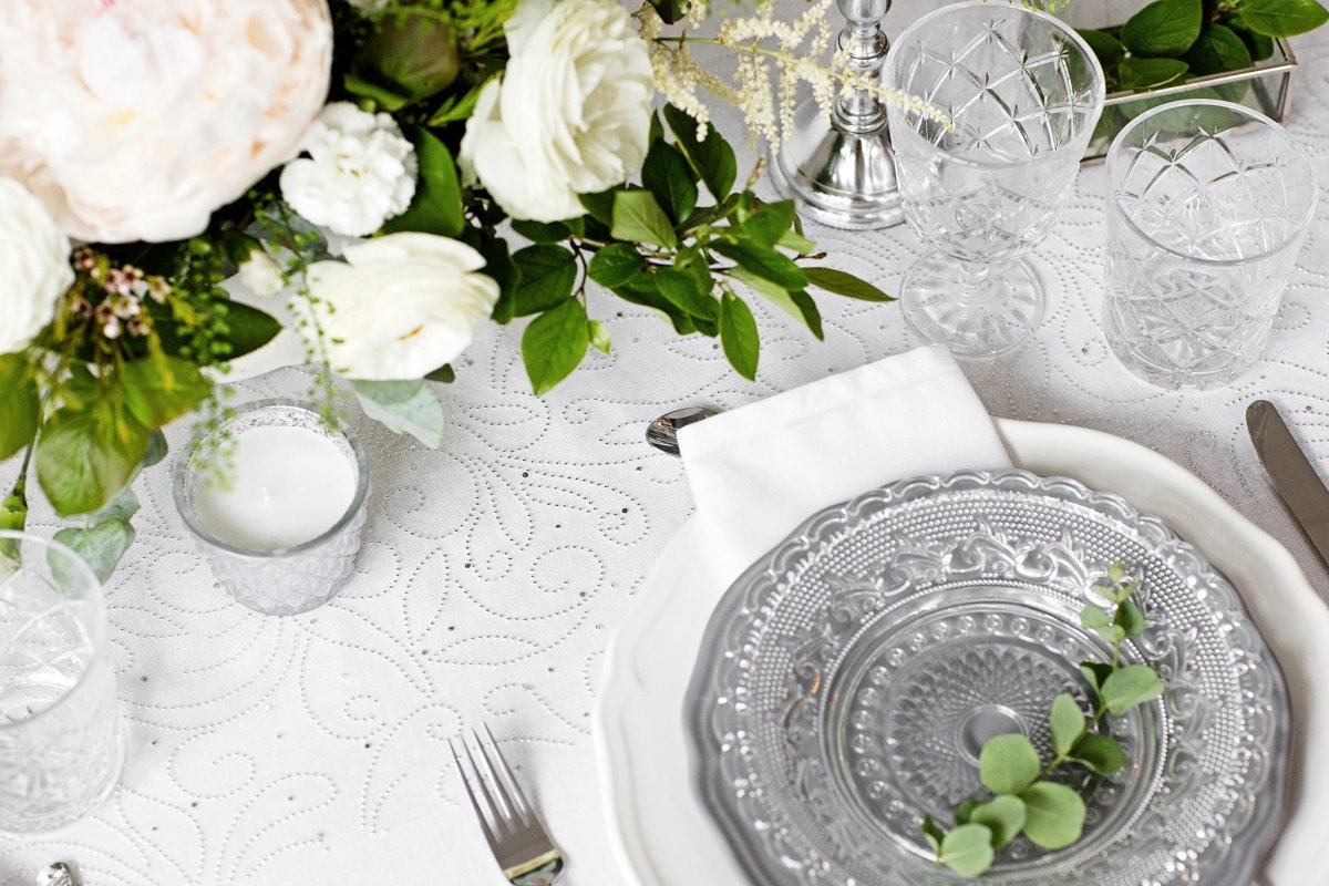 Inhoud: Printed Organza, wit met eenzijdige parel print, grootte 0.48x9 meter.