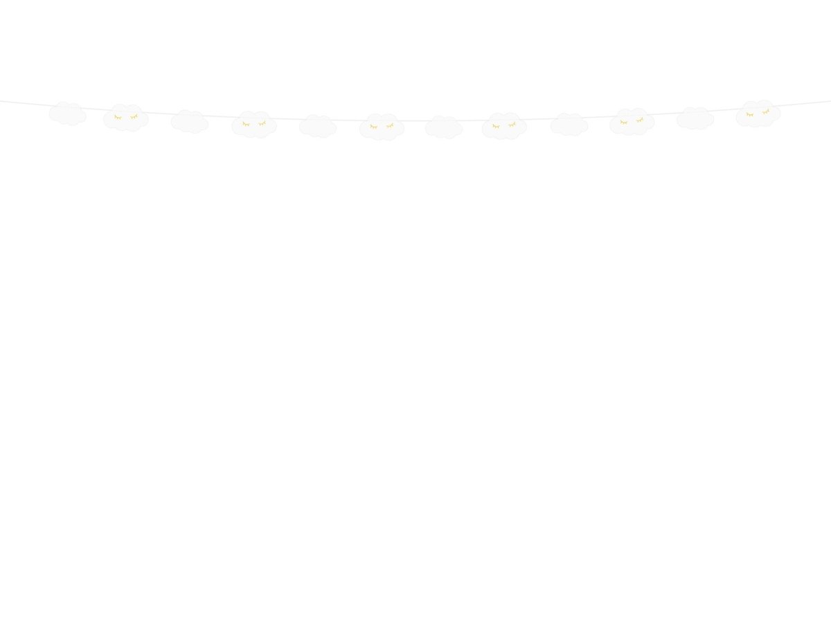 Inhoud: Genaaid guirlande Little Star - Wolken gemaakt van wit papier met goud print, lengte ong. 1,45 m, hoogte ca. 5,5 cm.