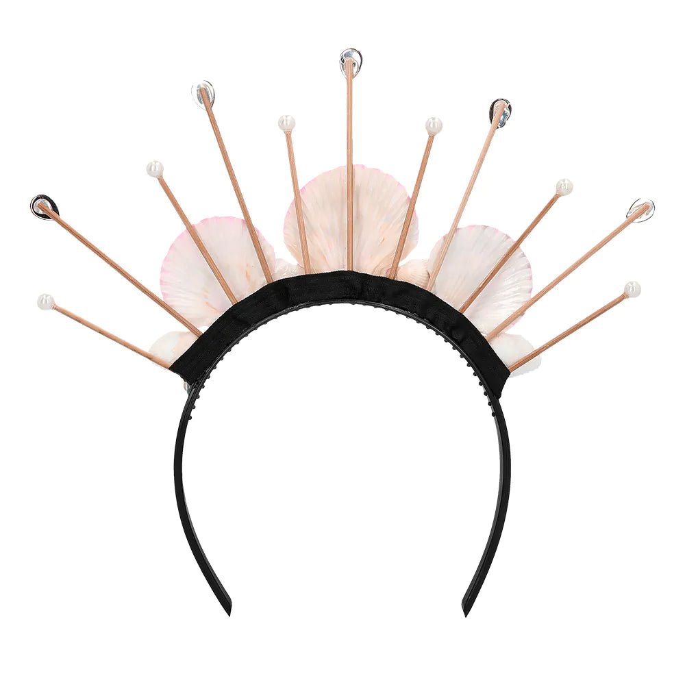 Een mooie halo kroon met roze schelpen en glimmende steentjes voor een magische Boho look. De diadeem past perfect bij een festival of strand outfit met invloeden uit de oceaan, maar is ook zeker een uniek accessoire om een zeemeermin kostuum voor Carnaval of een themafeest helemaal compleet te maken.