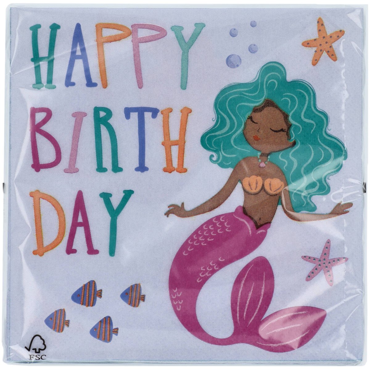 Alle zeemeerminnen aan tafel! Servetten - Mermaid Magic - 33 x 33 cm - 20 stuks. Inhoud: 20 servetten. Bijvoorbeeld te gebruiken tijdens de volgende feestgelegenheid/feestgelegenheden: Kinderfeestje, Verjaardag. Servetten met prachtige zeemeerminnen en hun onderwater-schatten. De servetten hebben een paars/blauwe kant met daarop 1 zeermeermin en de tekst "HAPPY BIRTHDAY" en een mintgroene kant met daarop 2 zeemeerminnen. Deze servetten horen bij de Mermaid Magic collectie van Folat. Dit artikel is gemaakt van papier.