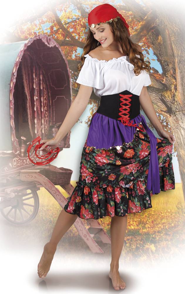 Inhoud: zigeuner shirt, rok, riem en bandana