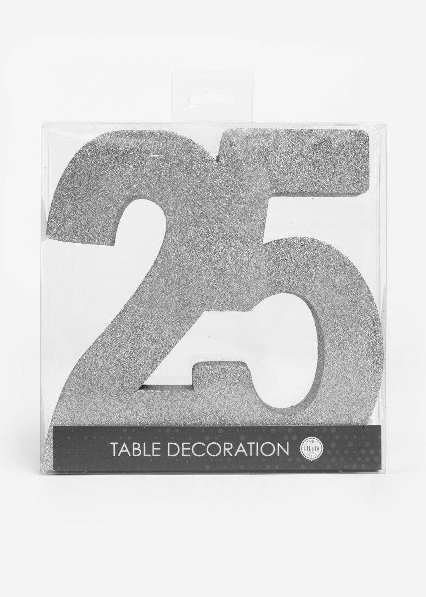 Zilver Tafeldecoratie Cijfer 25 Glitter 20,5cm