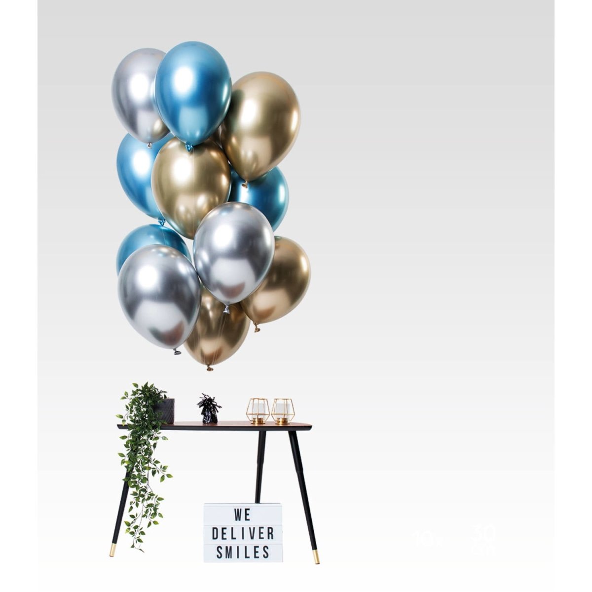 Zilveren, Blauwe en Antraciete Ballonnen Mix Chroom 33cm 12st