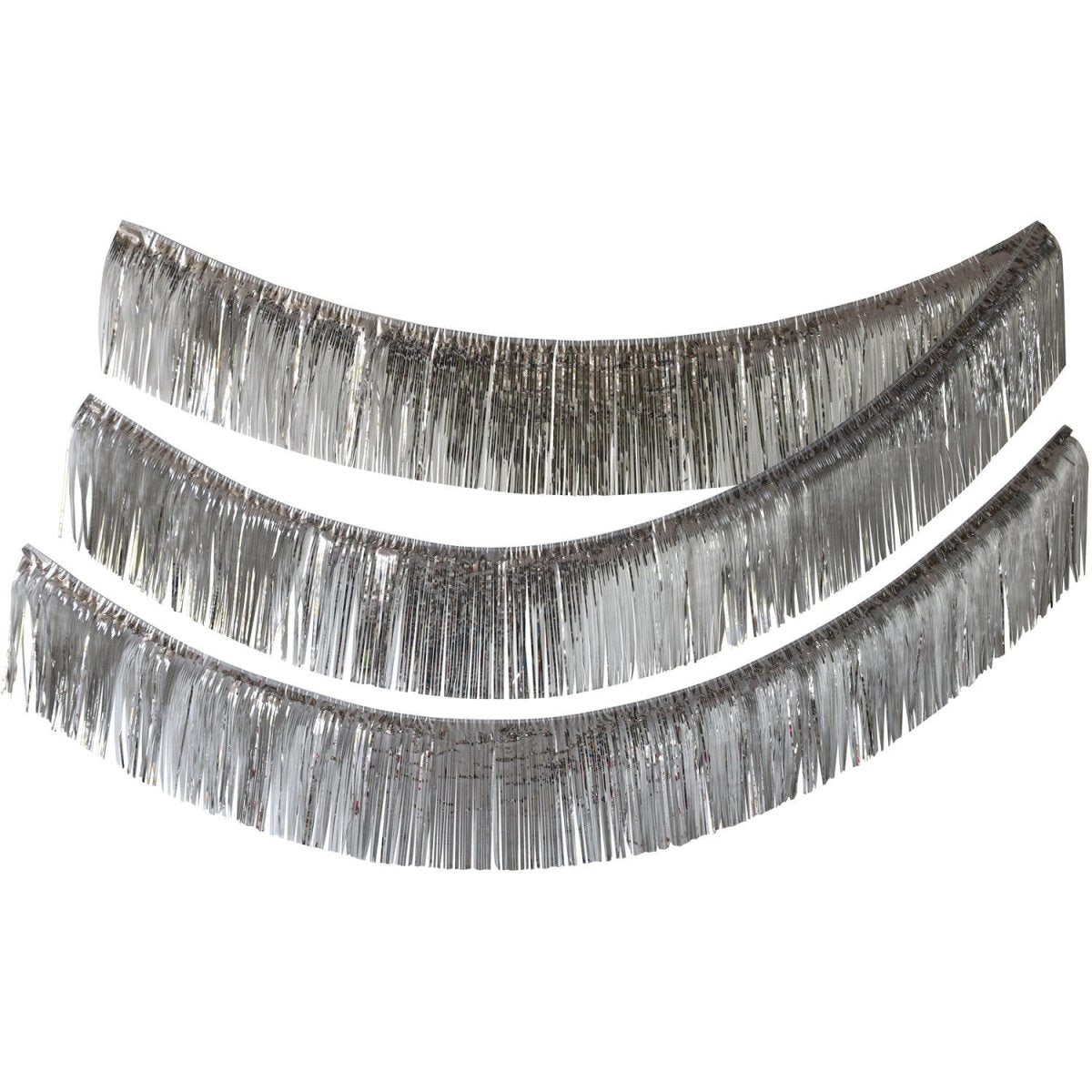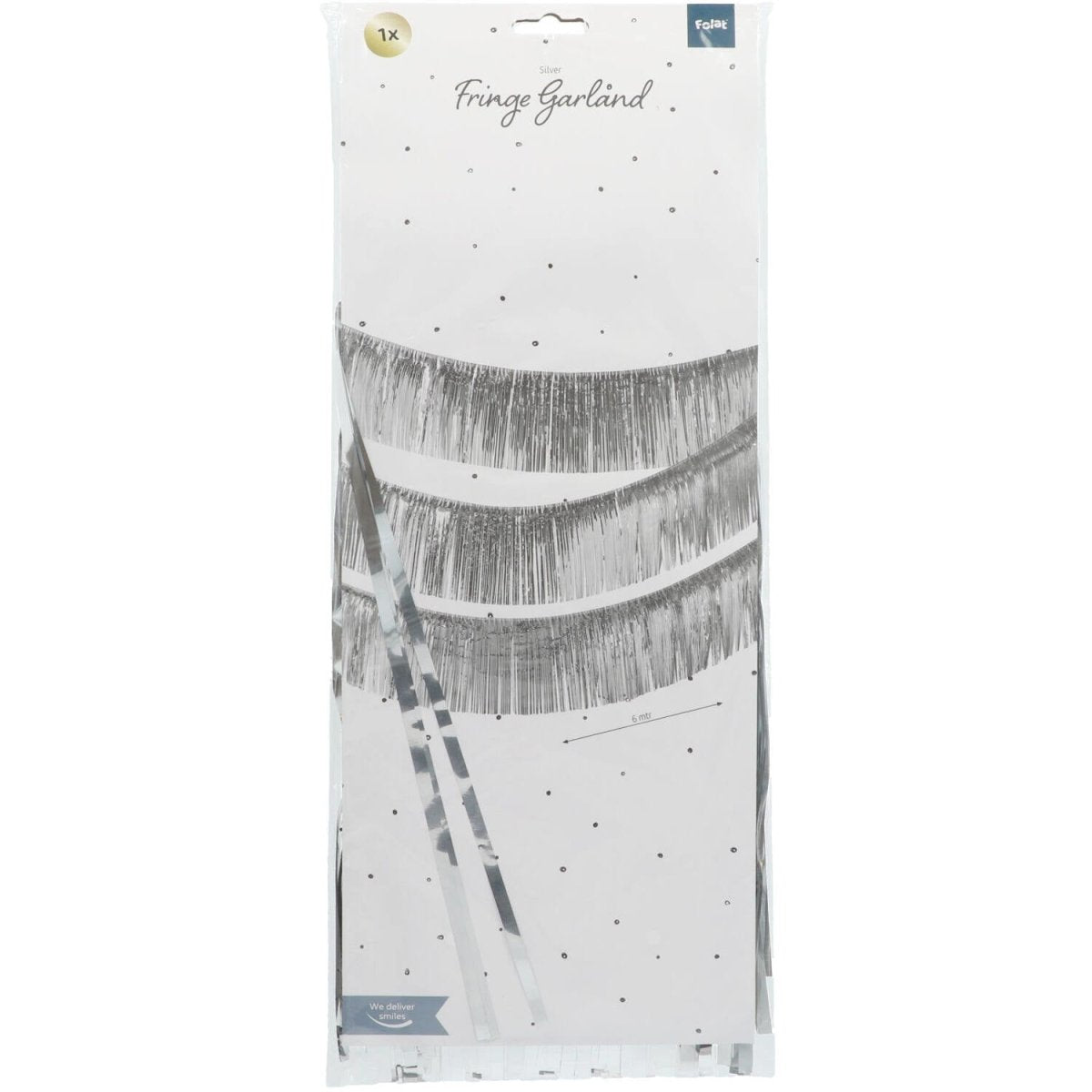 Franjeslinger Zilverkleurig - 6 meter. Inhoud: 1 slinger. Kleur: Zilverkleurig. Bijvoorbeeld te gebruiken tijdens de volgende feestgelegenheid/feestgelegenheden: jubileum, verjaardag, Oud en Nieuw. Deze slinger is 6 meter lang. Het artikel is gemaakt van folie.