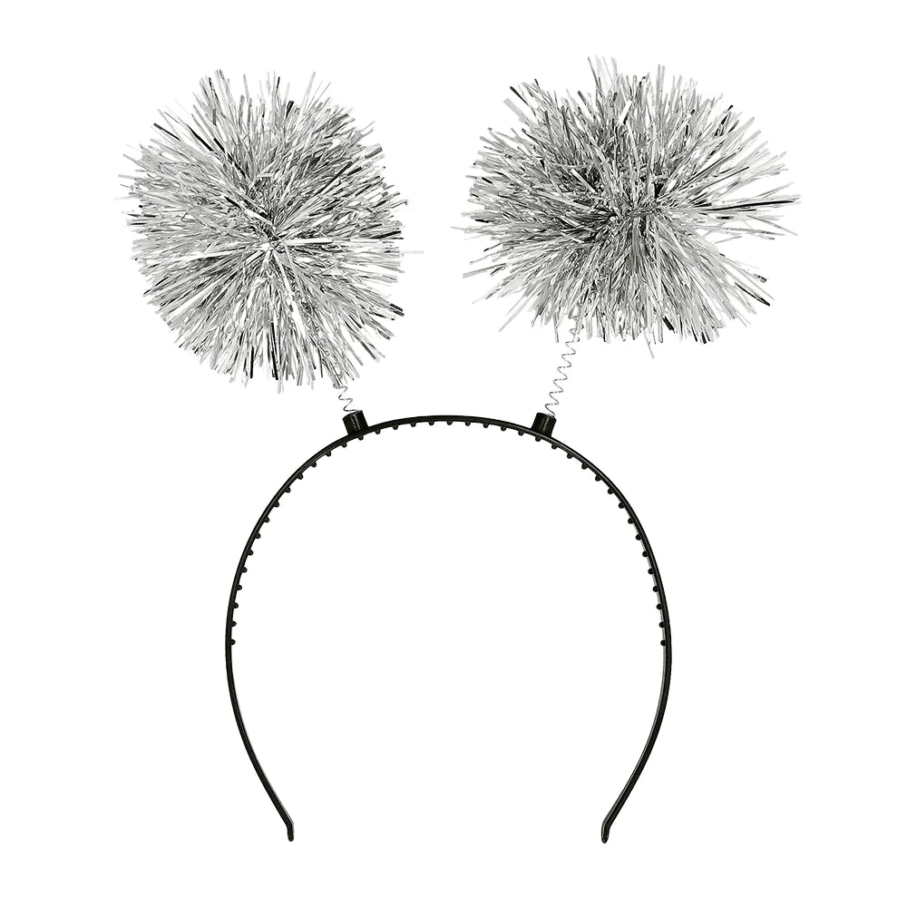 Voeg een sprakelende touch toe aan elke feest outfit met deze leuke zilveren pompoms diadeem. De bewegende pompoms lijken op vuurwerk waardoor de tiara de perfecte accessoire is voor een knallend oudejaarsfeest!