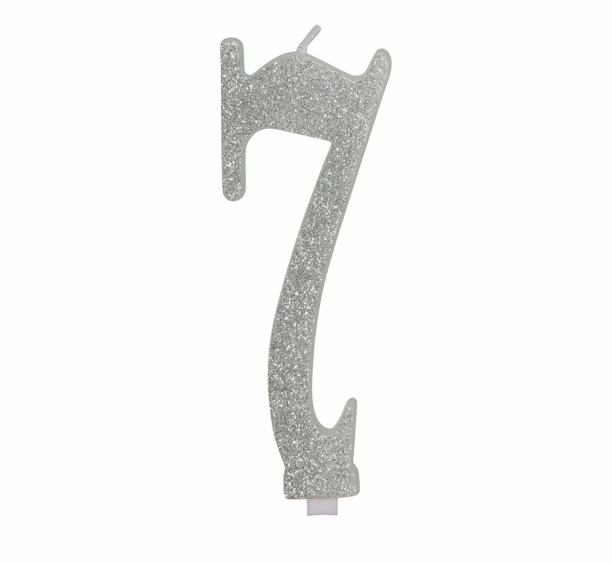 Zilveren Kaars 7 Jaar Glitter 12,5cm