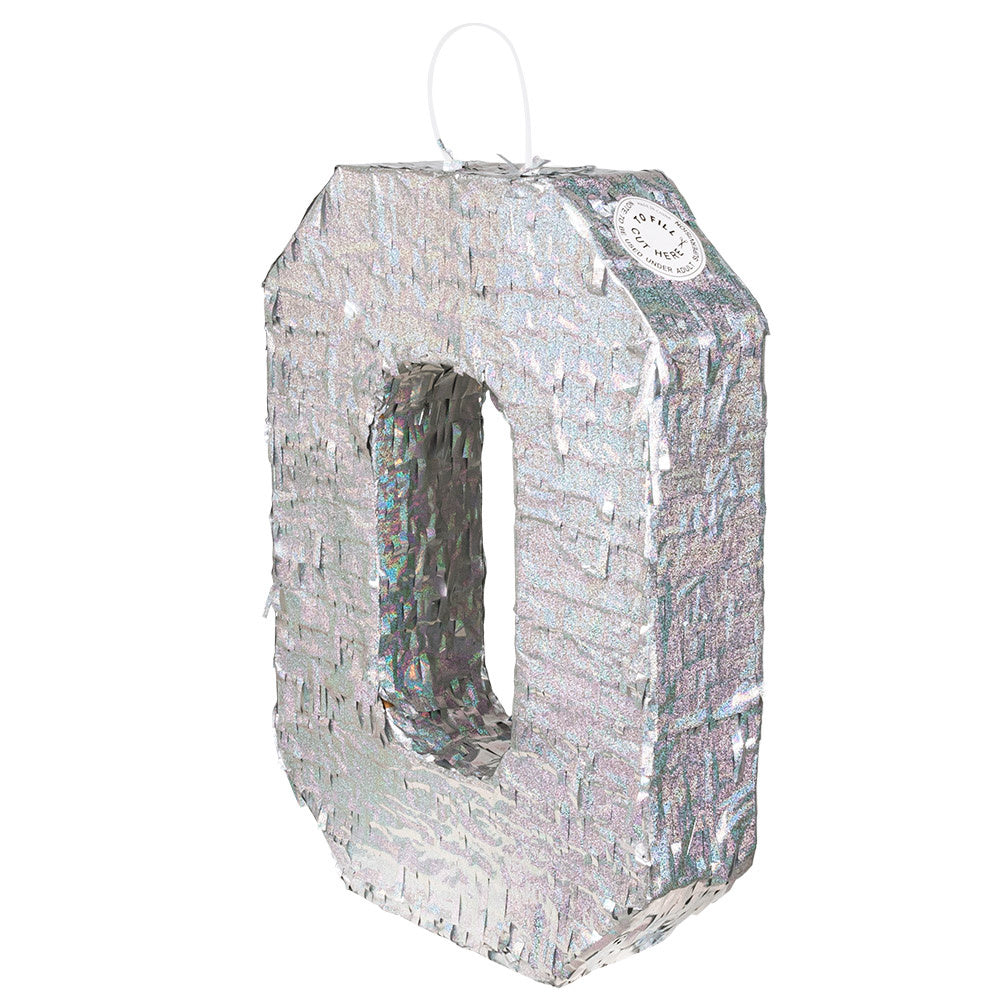 Zilveren Pinata 0 Jaar Holografisch 40cm