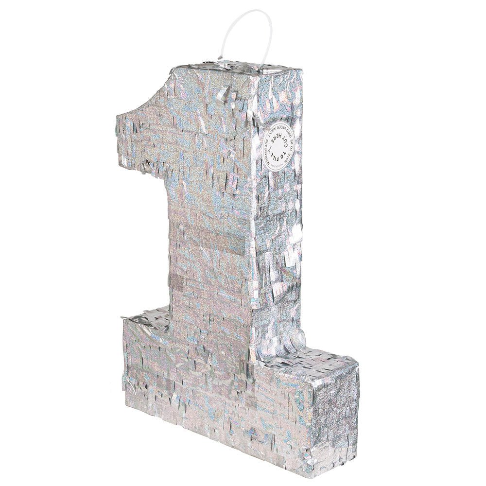 Zilveren Pinata 1 Jaar Holografisch 40cm