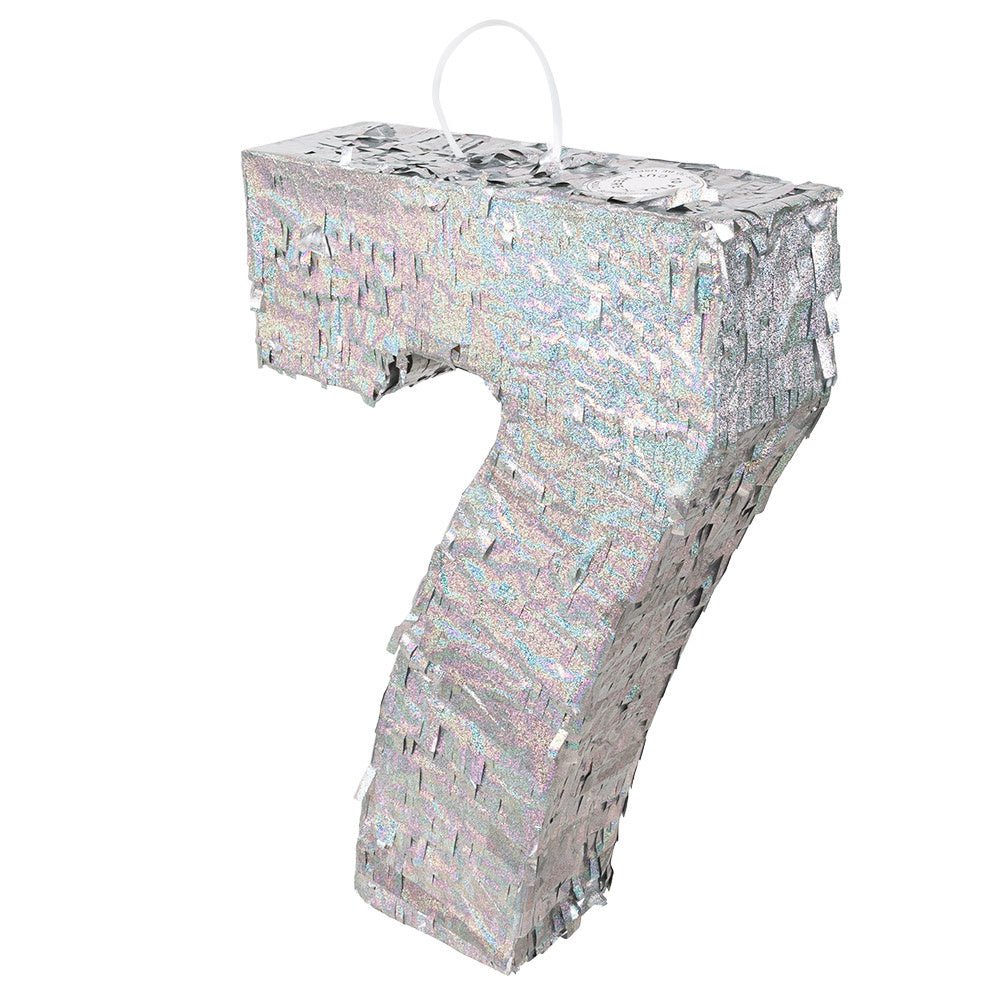 Zilveren Pinata 7 Jaar Holografisch 40cm