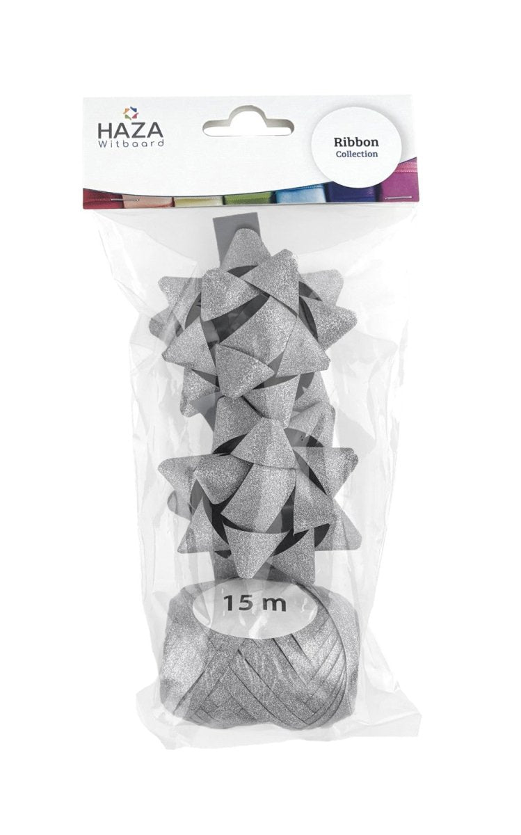 Compleet setje bestaande uit één polyband eitje en twee rozetten, ideaal voor het decoreren van cadeaus en knutselprojecten.