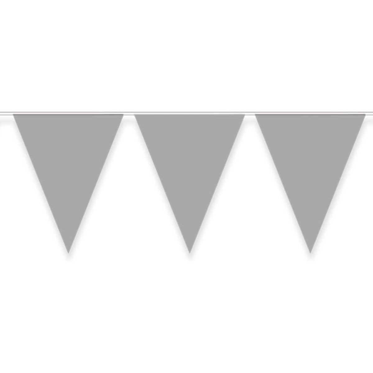 Vlaggenlijn Effen Zilver - 10 meter. Inhoud: 1 vlaggenlijn van 10 meter. Kleur: Zilverkleurig. Bijvoorbeeld te gebruiken tijdens de volgende feestgelegenheid/feestgelegenheden: verjaardag, kinderfeestje. Deze slinger is 10 meter lang. Het artikel is gemaakt van plastic.