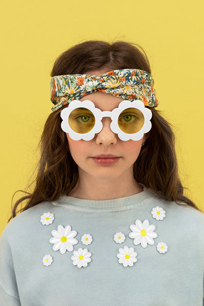 Beschrijving Reviews Over dit product Zonnebril Daisy in witte kleur met glazen in gele kleur, maat: breedte van het montuur ca. 13 cm, hoogte van het montuur ca. 6 cm, lengte van de slapen ca. 13 cm. Trustpilot