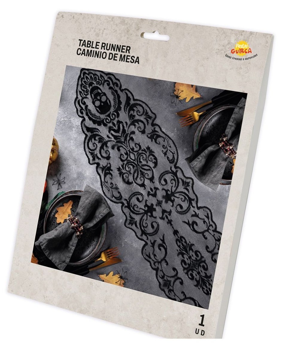 Zwart Halloween Tafelkleed Kant 180cm