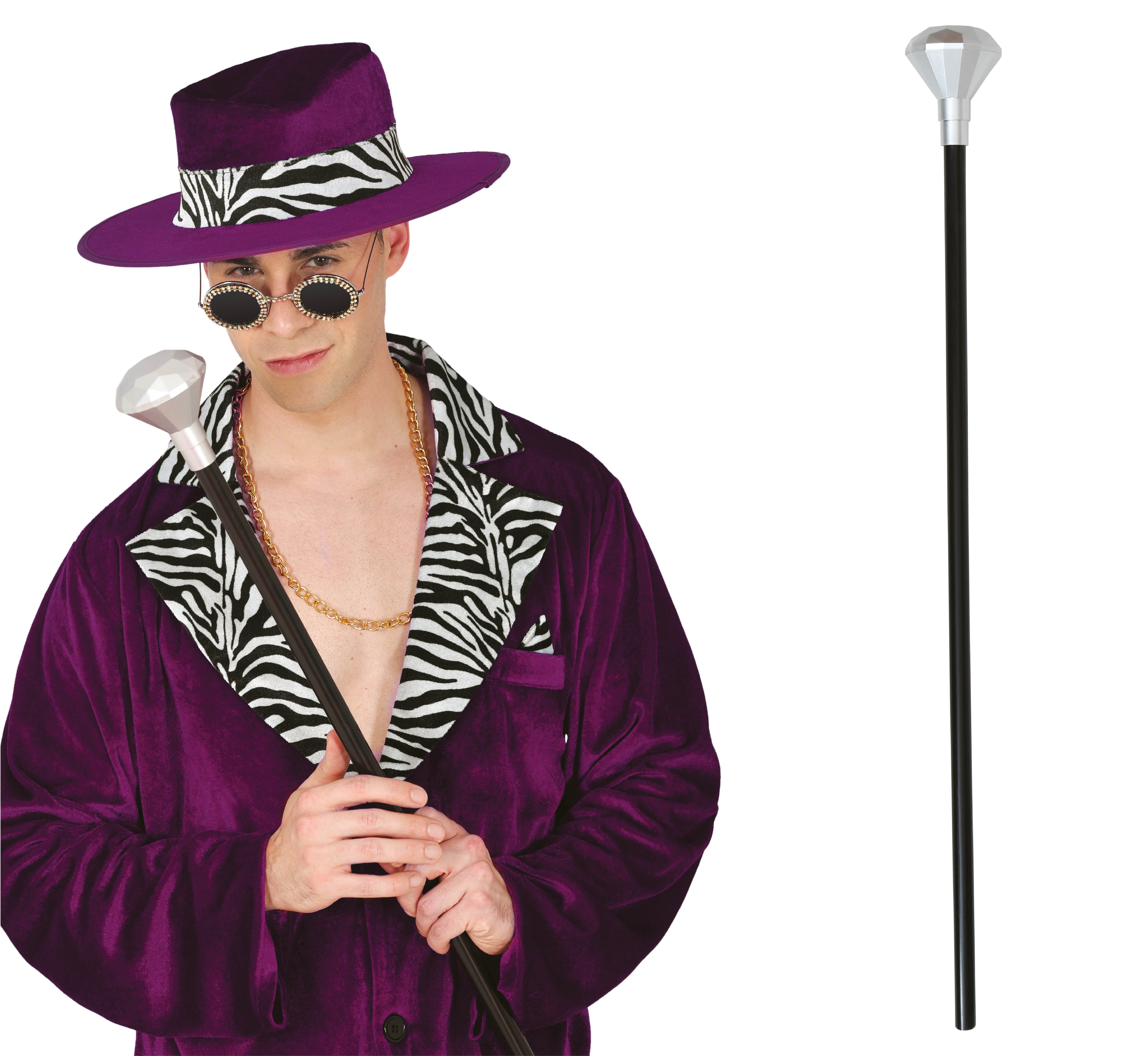 Zwart Zilveren Wandelstok Diamant Knop 85cm