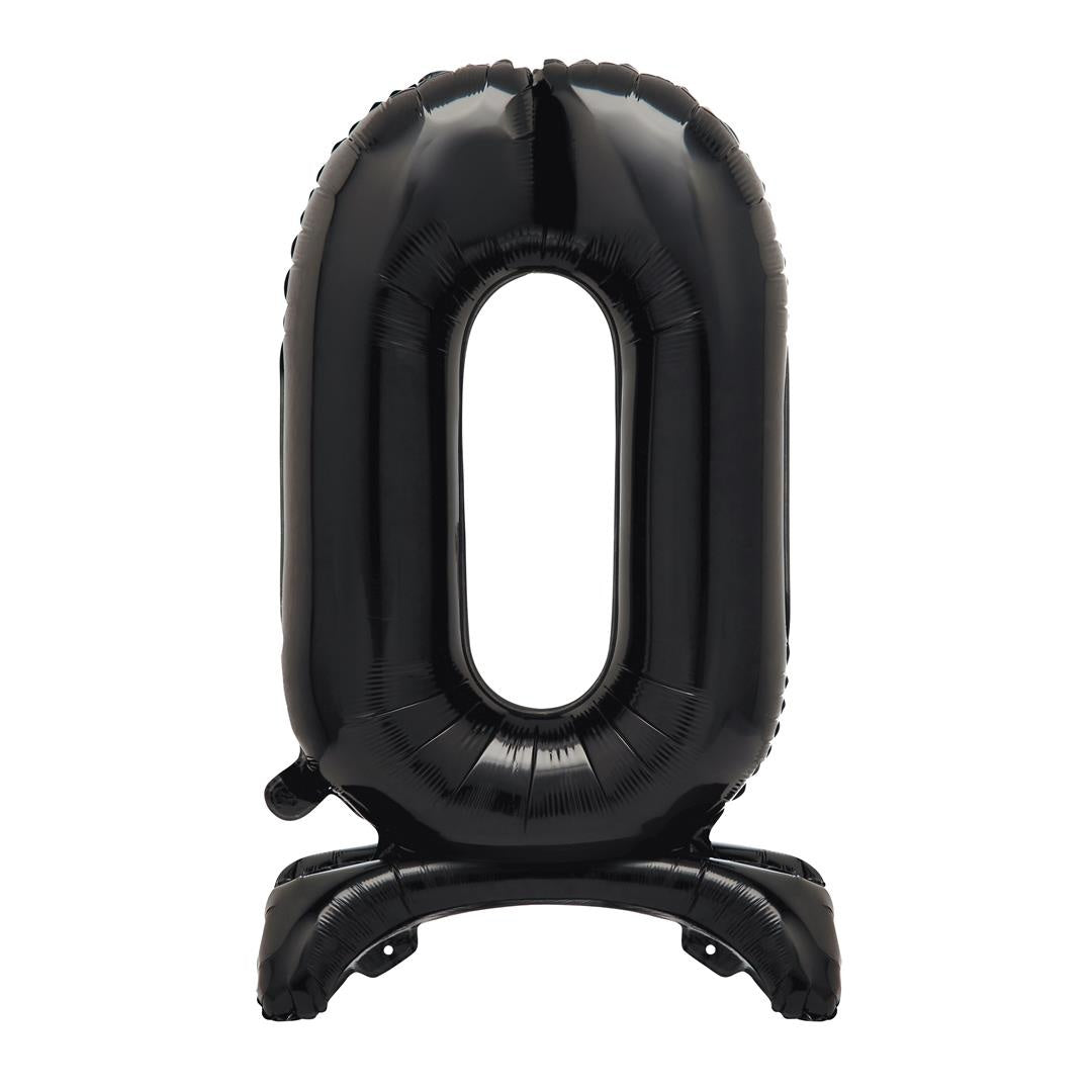 Zwarte Cijfer Ballon 0 Jaar Met Standaard 76cm