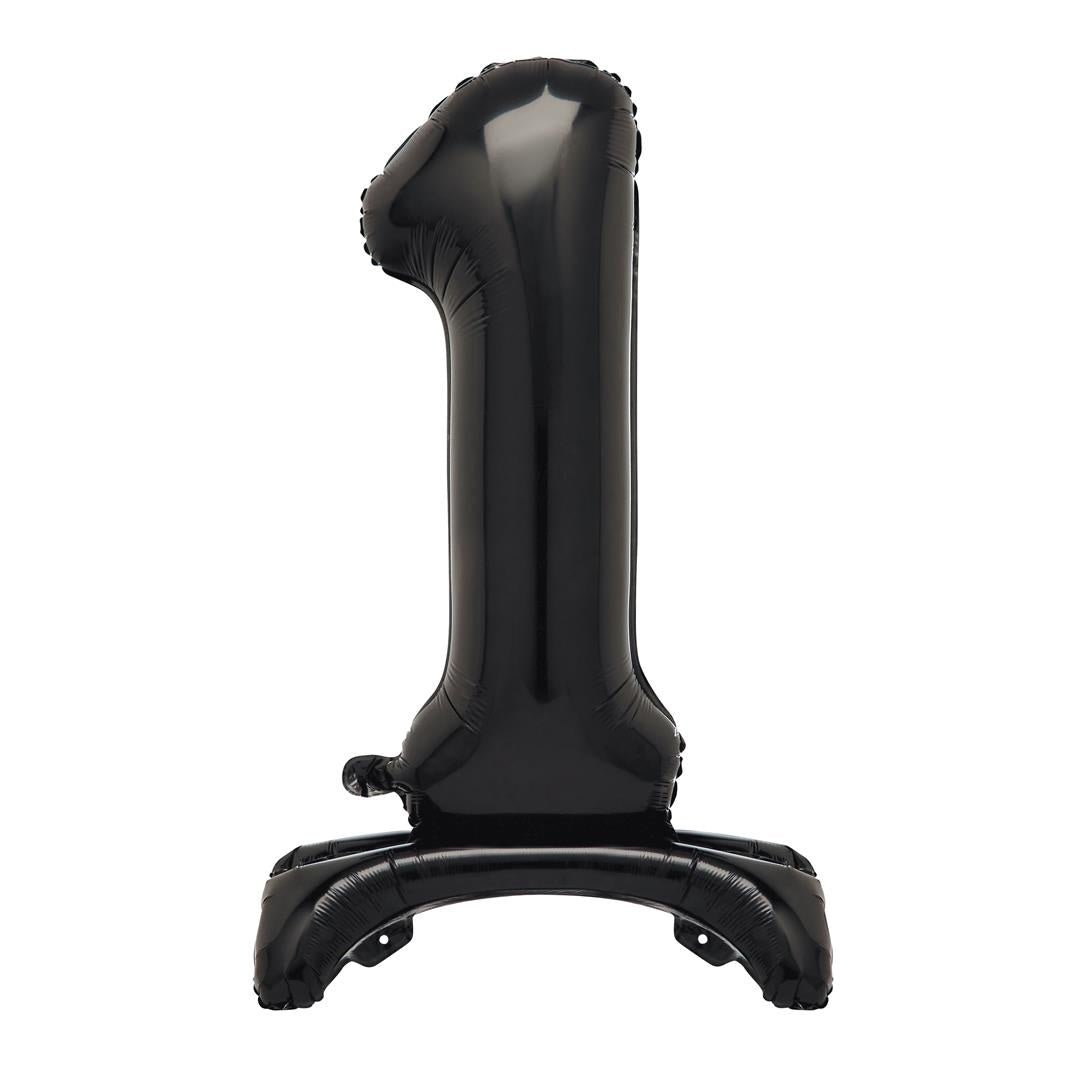 Zwarte Cijfer Ballon 1 Jaar Met Standaard 76cm