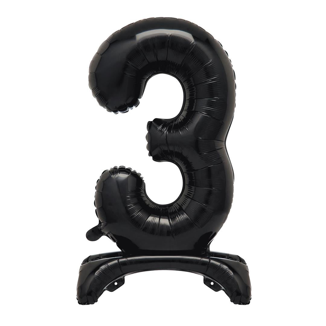 Zwarte Cijfer Ballon 3 Jaar Met Standaard 76cm