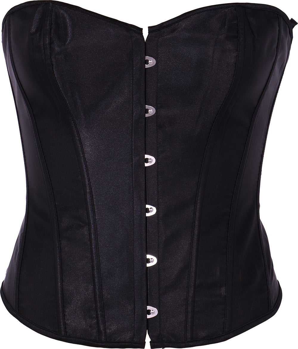 Dit zwarte damescorset is een klassiek en veelzijdig kledingstuk dat perfect is voor carnaval, themafeesten of als elegante toevoeging aan een verkleedoutfit. De tijdloze kleur maakt het eenvoudig te combineren met diverse stijlen.