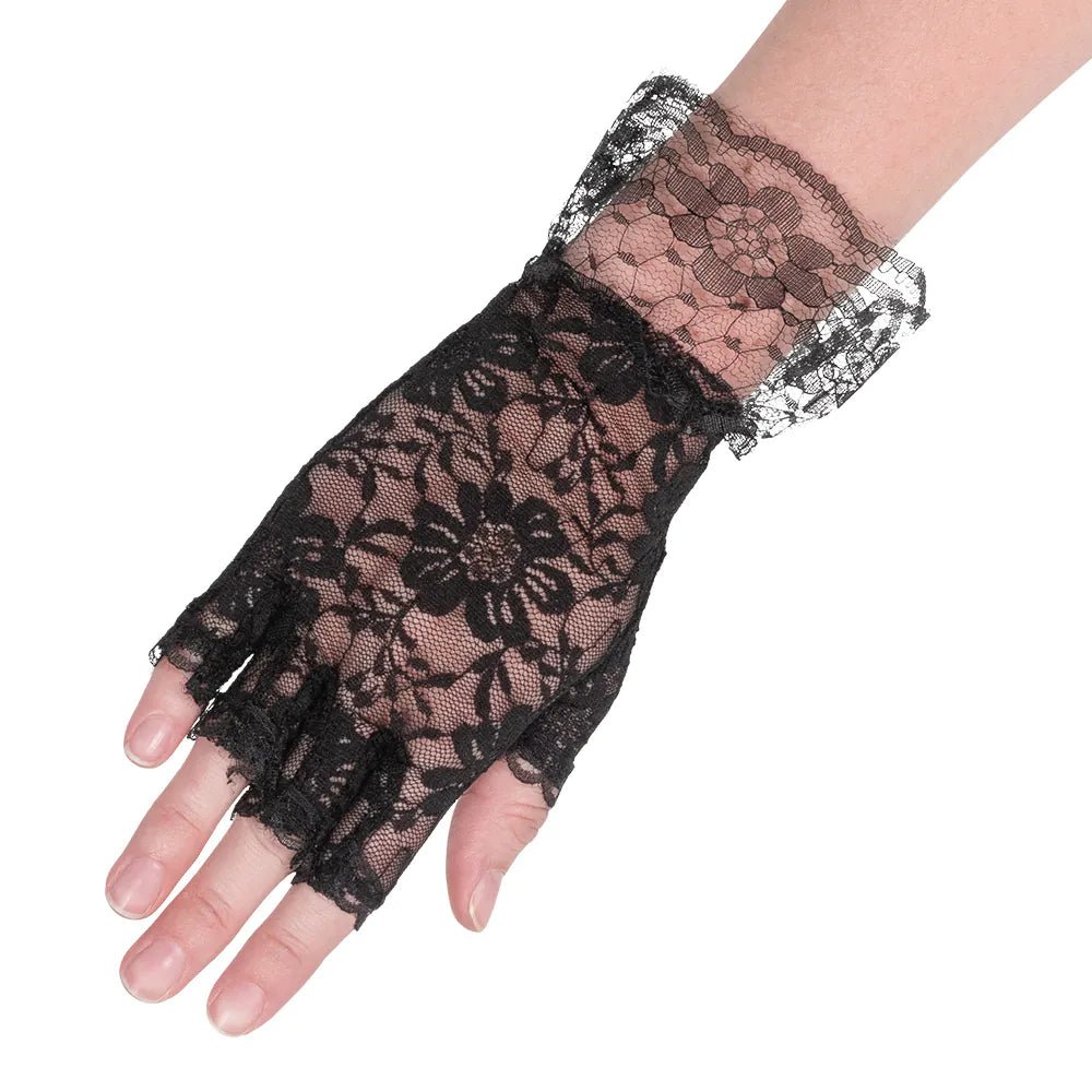 Deze elegante vingerloze kanten handschoentjes zijn perfect om een jaren 20 flapper kostuum tot in de puntjes compleet te maken. Het mooie zwarte kant geeft de handschoentjes een vintage glamour look die geinspireerd is op de roaring twenties charleston stijl.