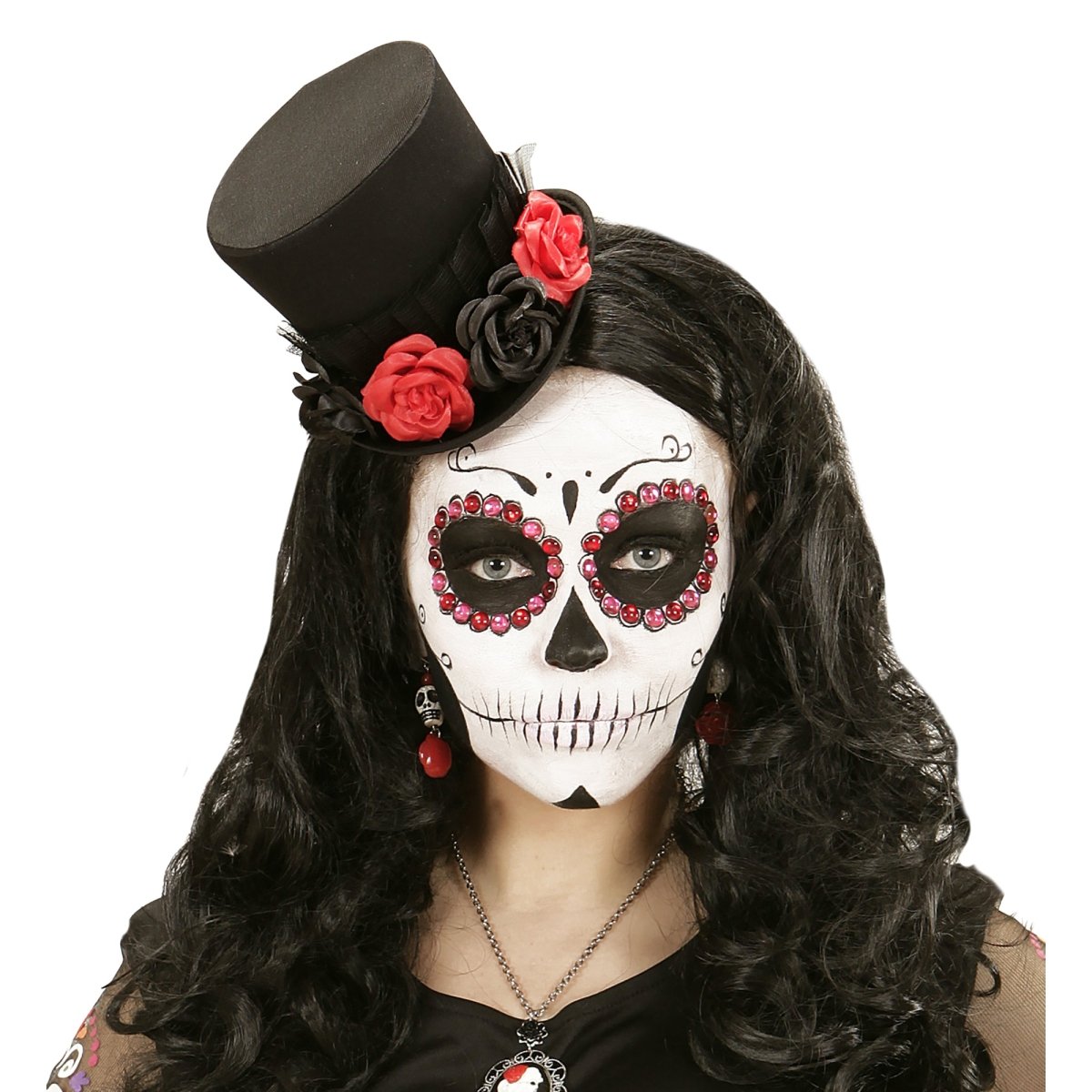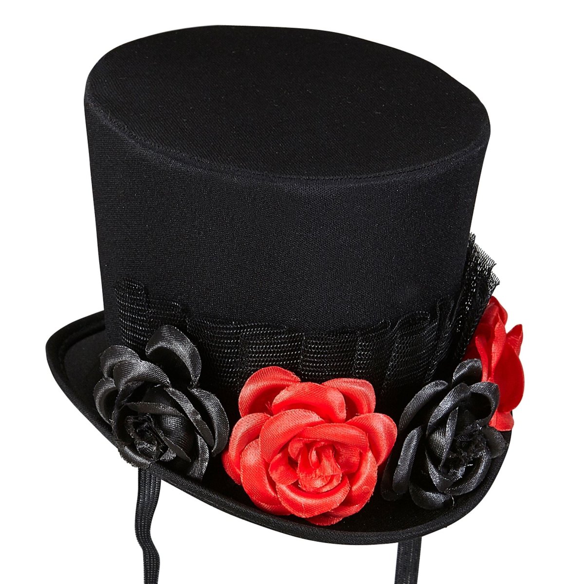 Verpakkingsinhoud: mini hoge hoed met tulle, 4 rozen