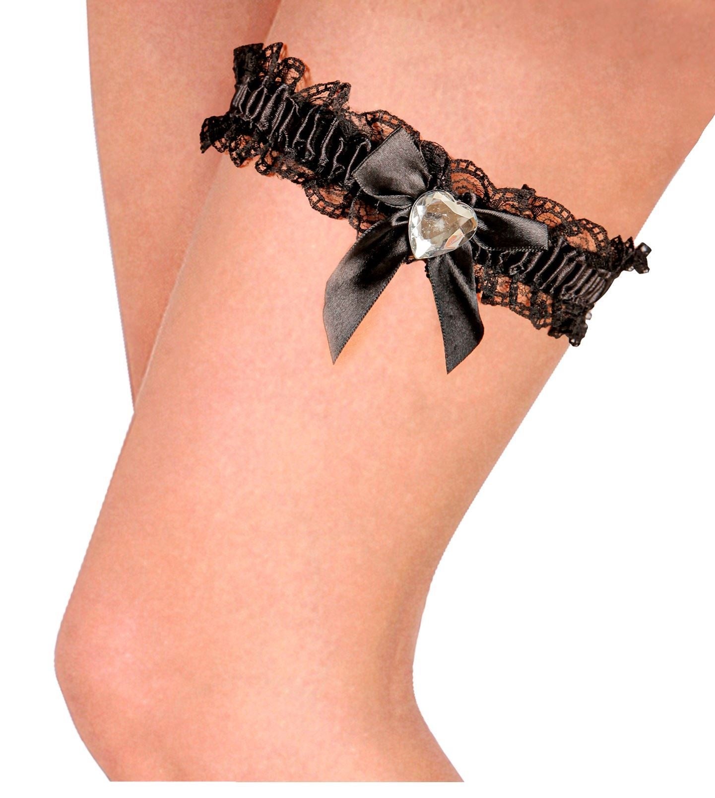 Zwarte Kousenband Met Diamanten Hartje