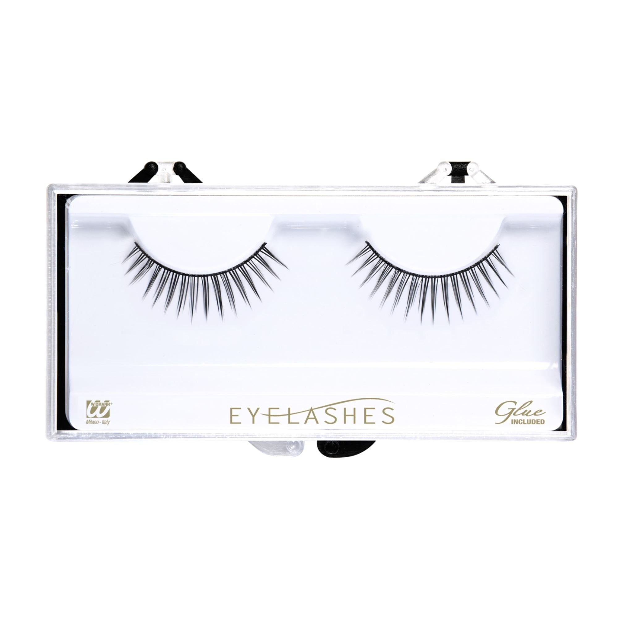 Omschrijving: wimpers met zwarte puntjes en lijm uit glazen flesjes