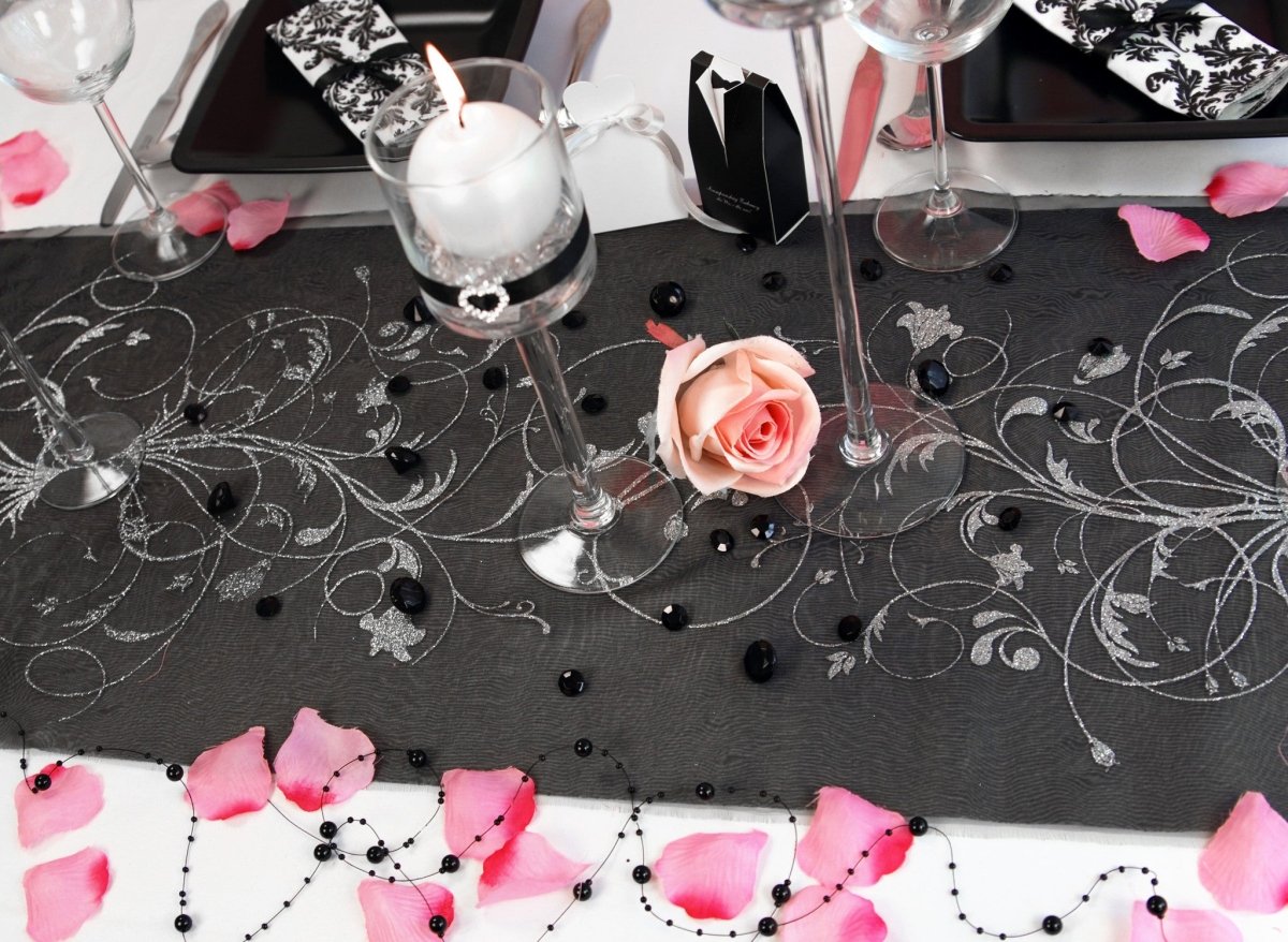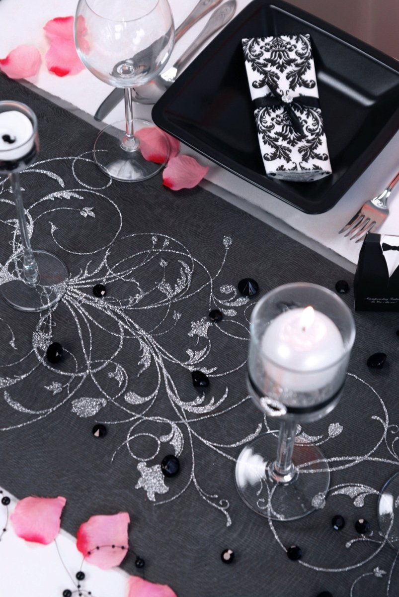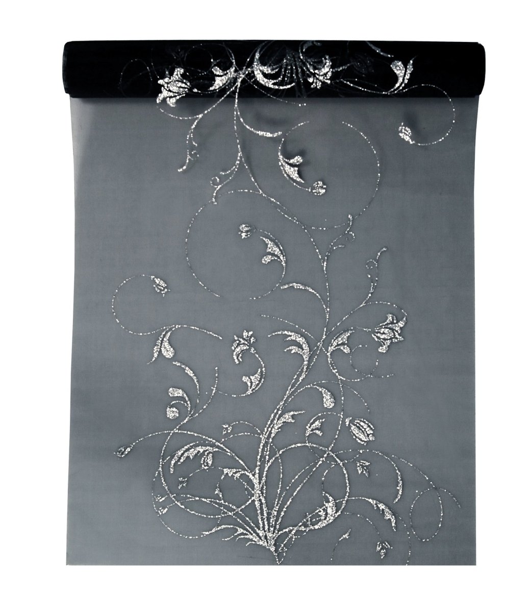 Zwarte Organza Stof Zilveren Bloemen 36cm 9m