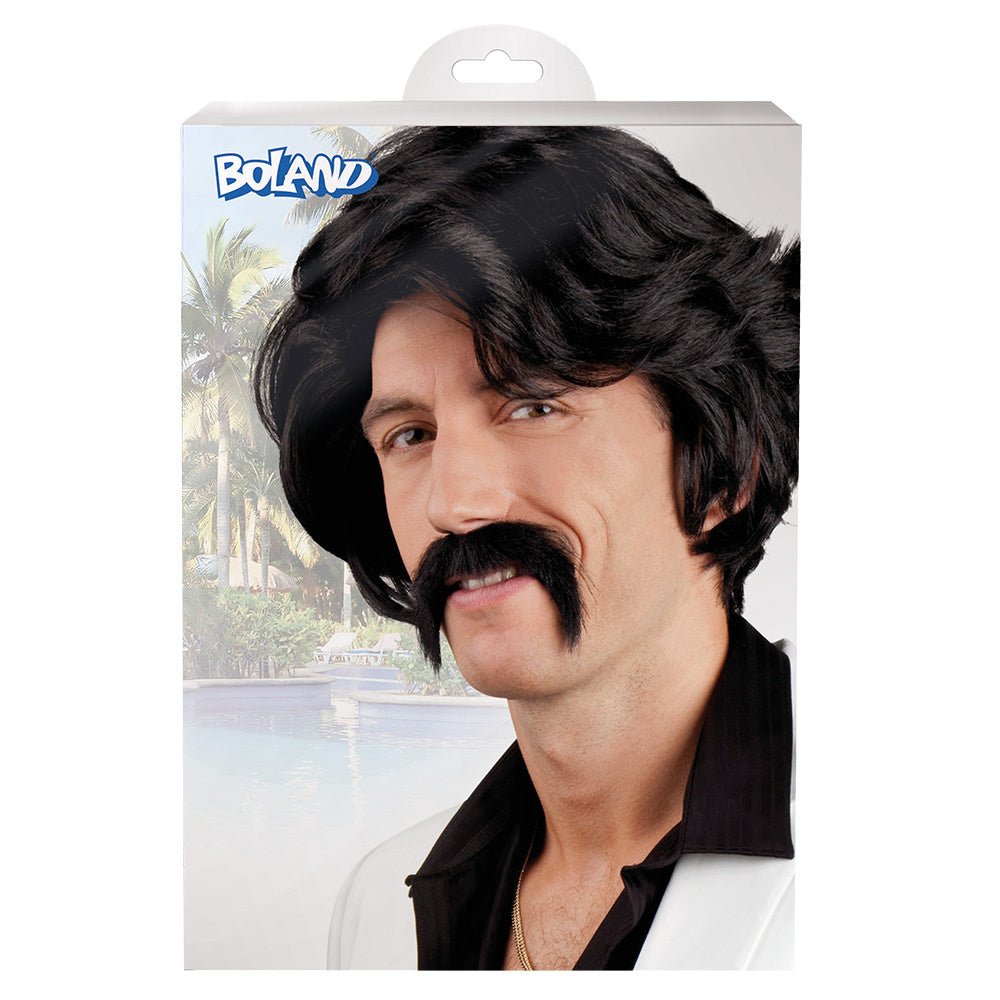 Verpakkingsinhoud: Zwarte Pruik en Snor