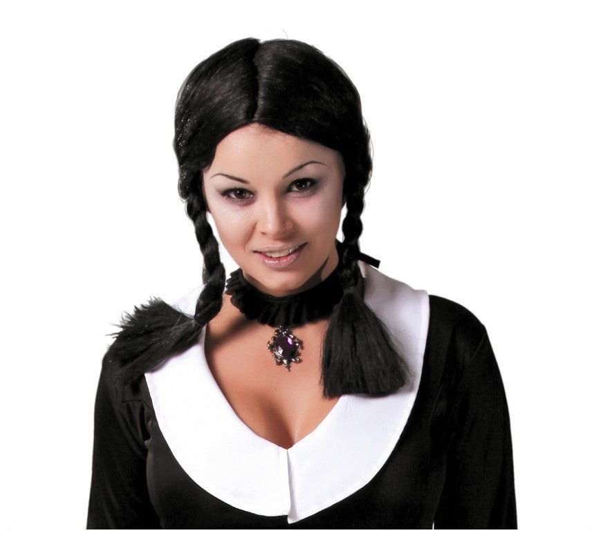 Zwarte Pruik met Vlechten