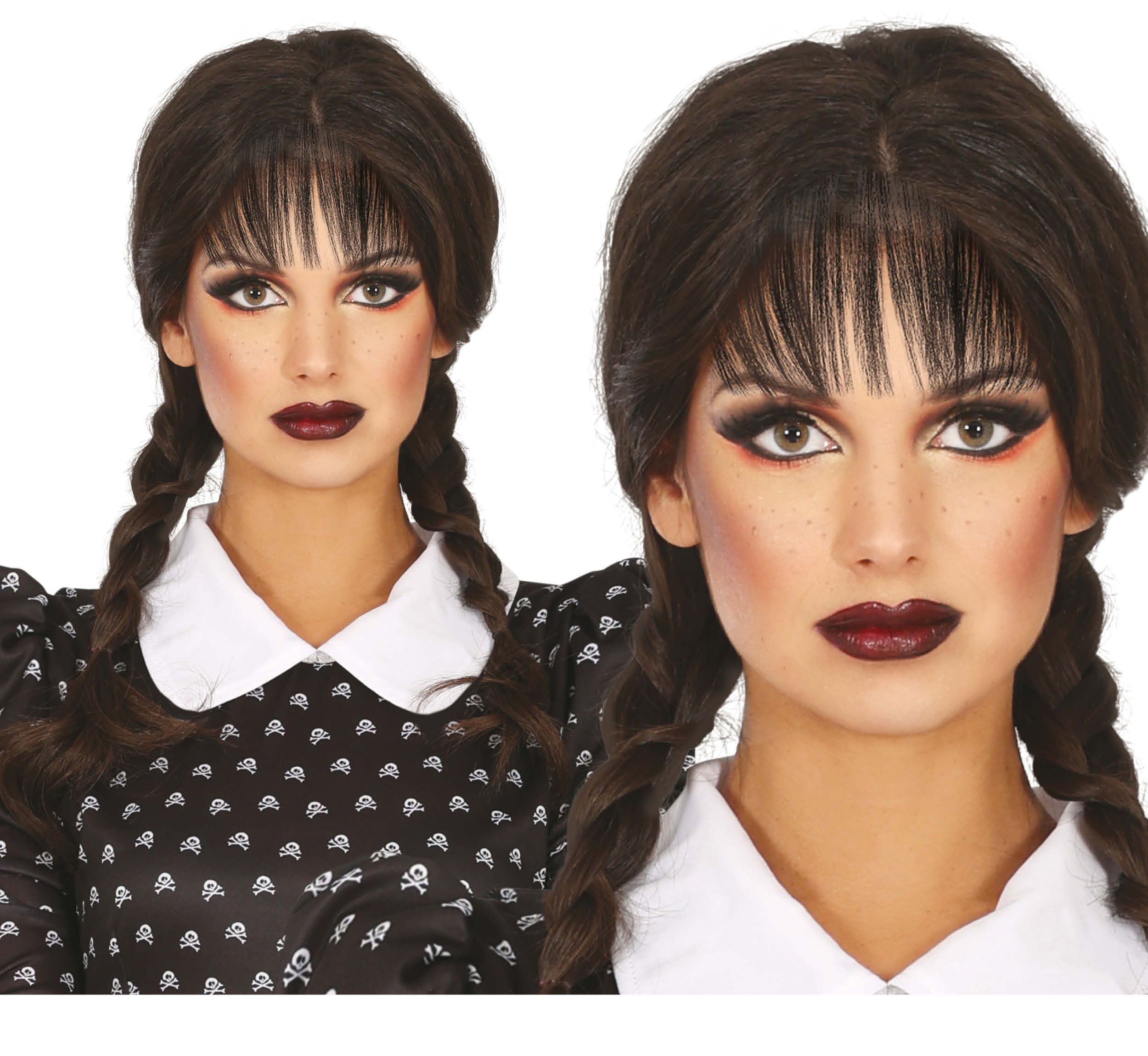 Zwarte Pruik met Vlechten Pony
