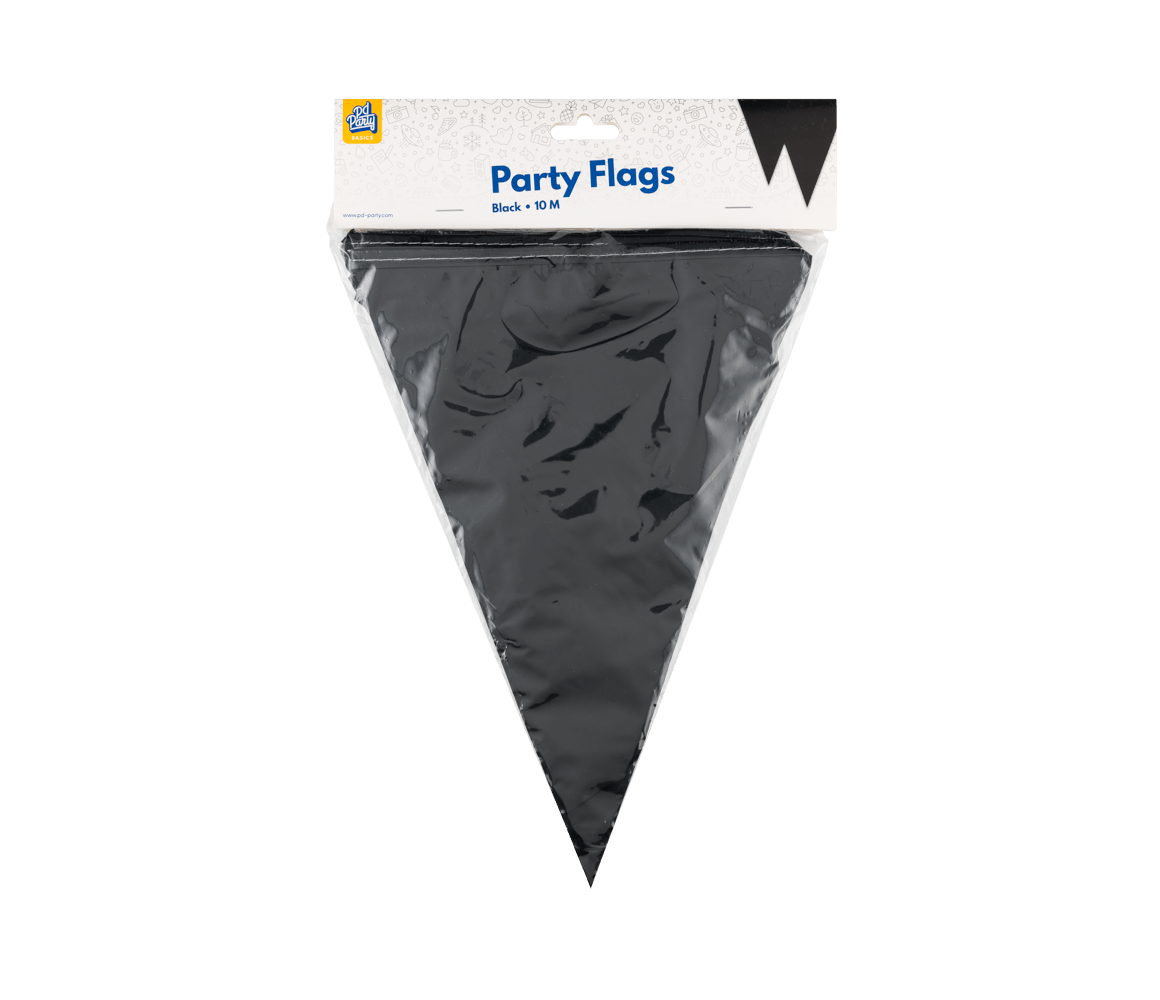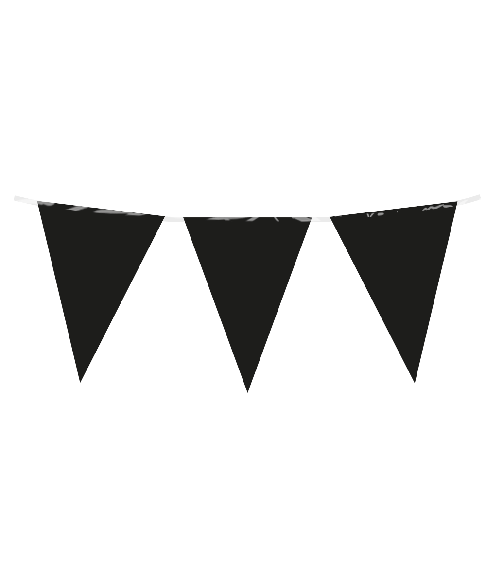 Met de party flags PE - black uit de Basic collectie van Paper Dreams haal je een kwalitatieve zwarte vlaggenlijn in huis voor een scherpe prijs. De vlaggenlijn is 10 meter lang.
