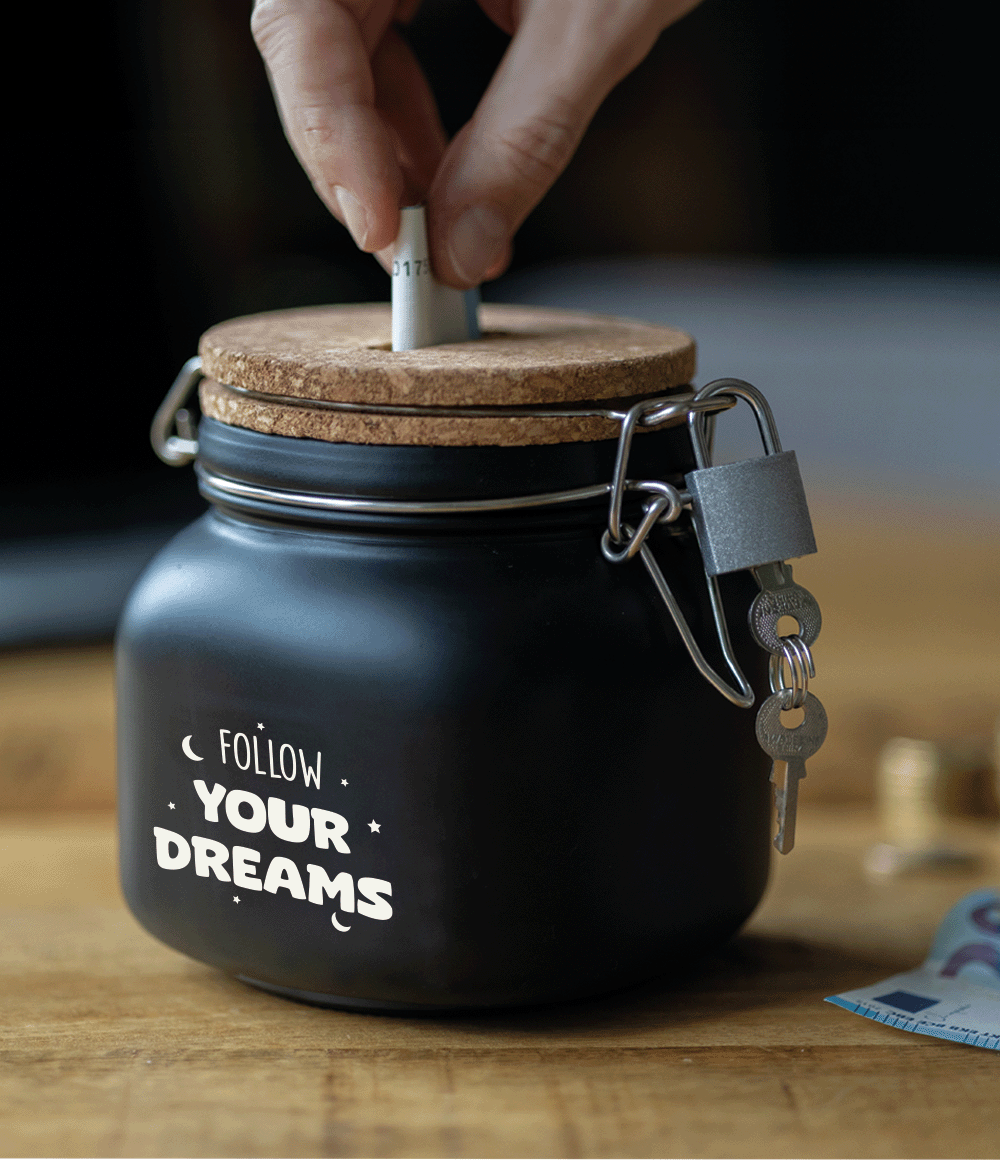 Zwarte Spaarpot Follow Your Dreams 12,5cm