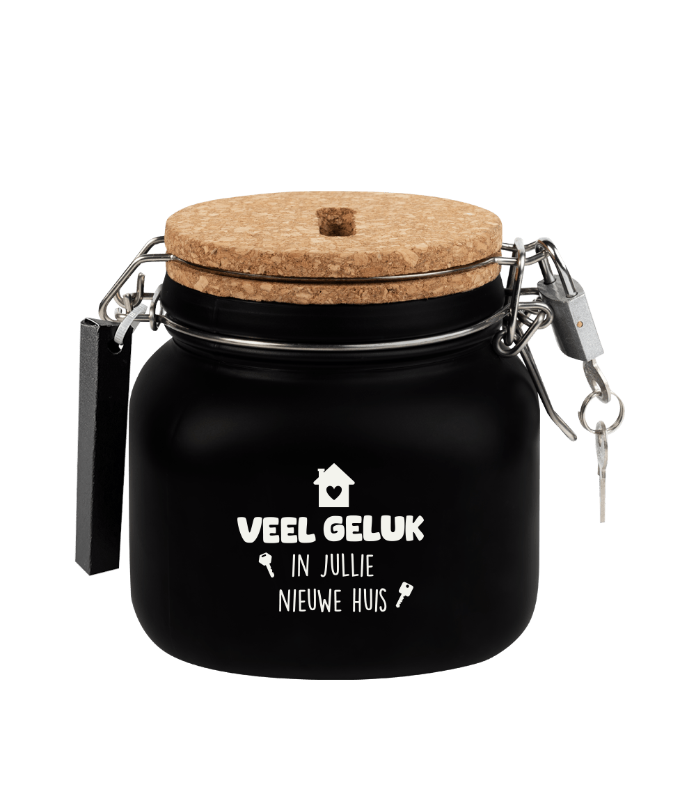 De luxe spaarpotten van Paper Dreams zijn perfecte cadeaus voor bijvoorbeeld Vaderdag, Moederdag of een verjaardag. Deze luxe spaarpot - nieuwe huis is gemaakt van glas en zwart van kleur.