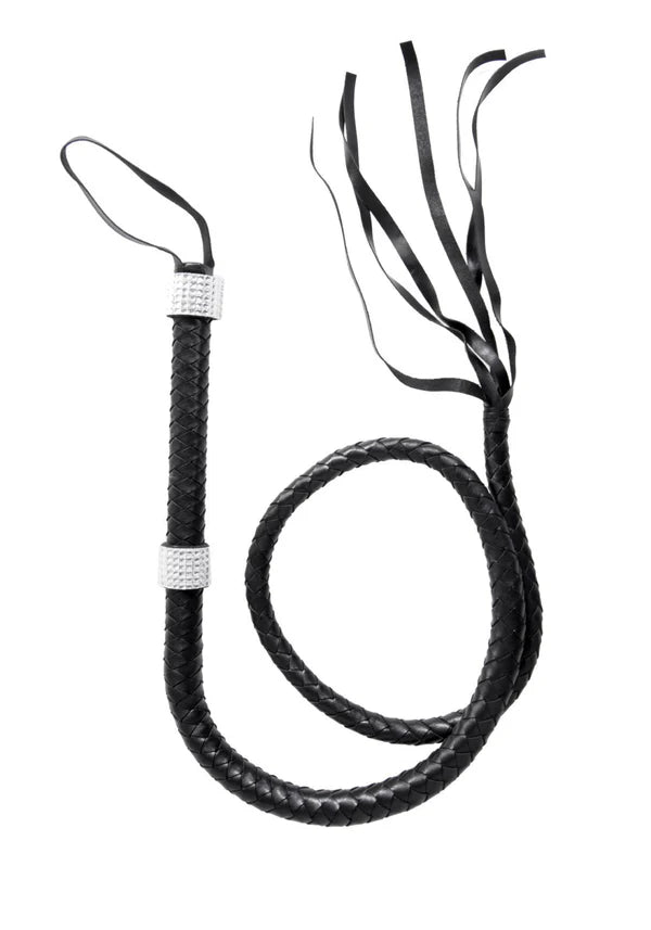 ✅ Faux leather gevlochten zweep met rhinestone-look handvat