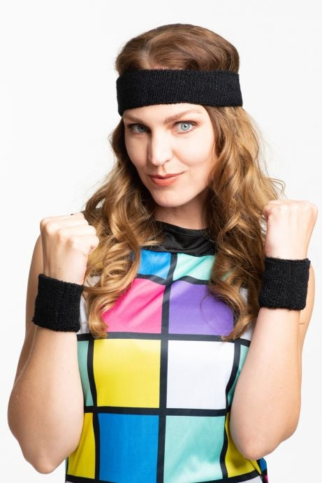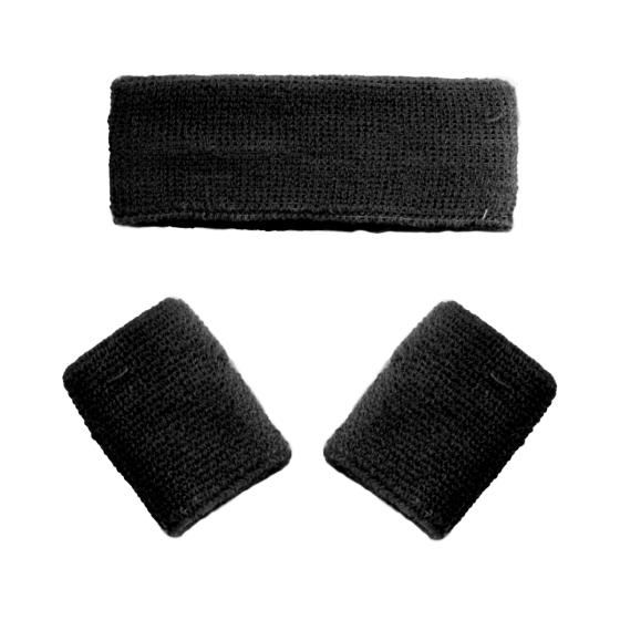 Inhoud: Set Hoofdband/Polsbandjes Zwart